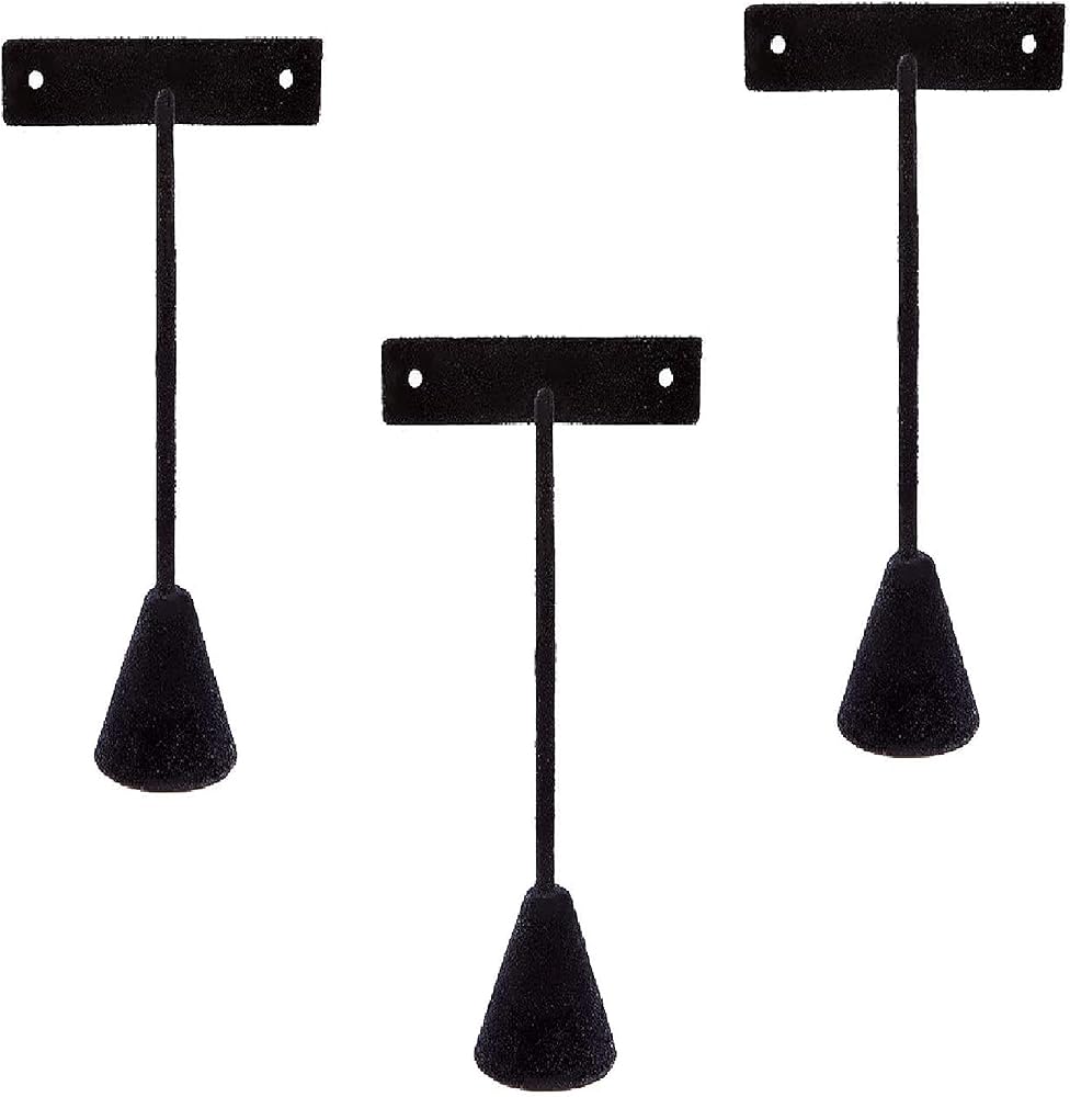 حامل على شكل T من القطيفة السوداء عالية الجودة. من الأفضل عرضها في متاجر البيع بالتجزئة، أو العروض التجارية، أو المتاحف، أو للاستخدام الشخصي. رائعة لعرض الأزرار، والأطواق والأقراط المتدلية قاعدة مرجنة لتحقيق أفضل توازن، تباع في عبوة من 3 مقاسات 6.5 سم × 16.75 سم ارتفاع، المجوهرات غير متضمنة