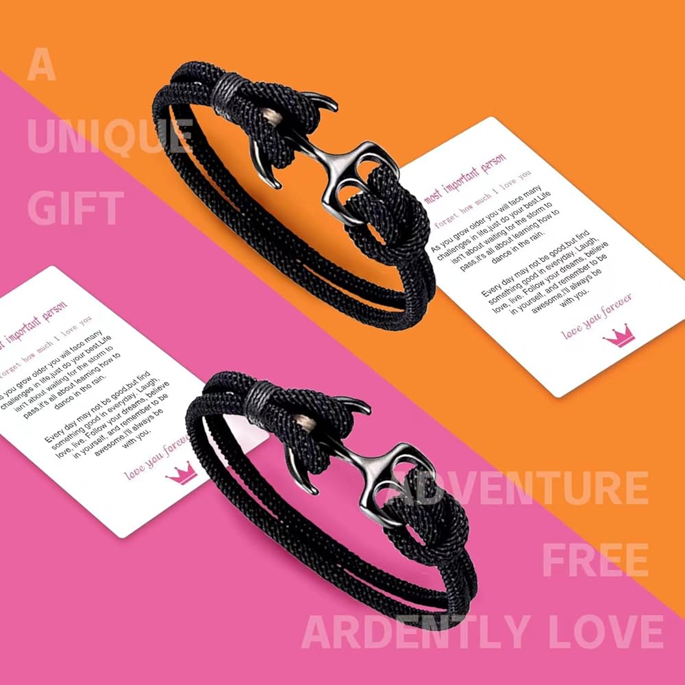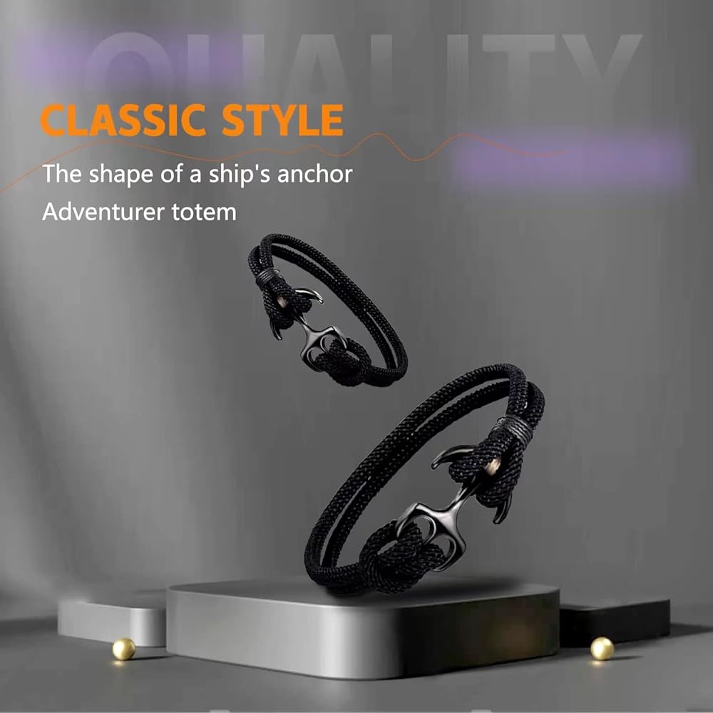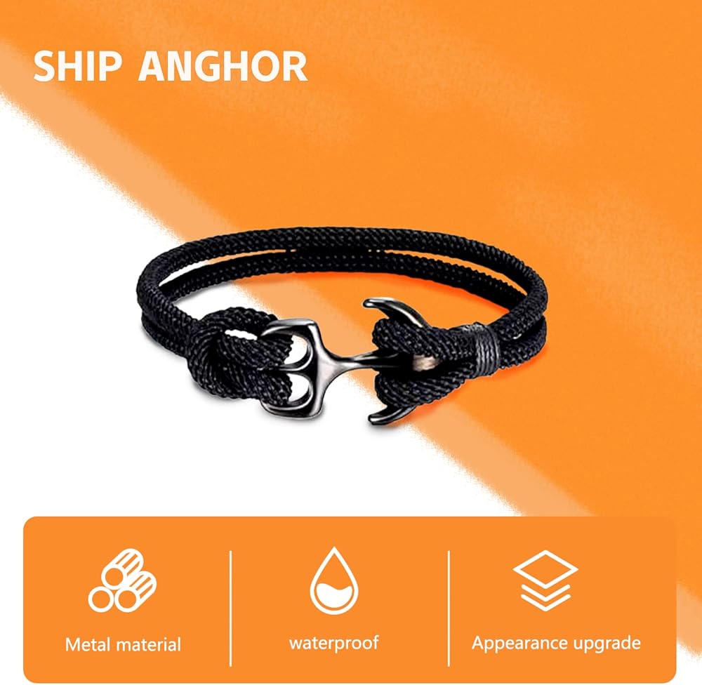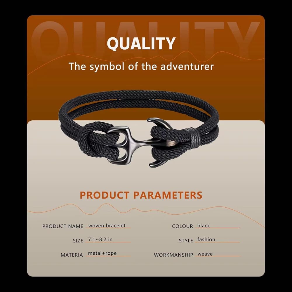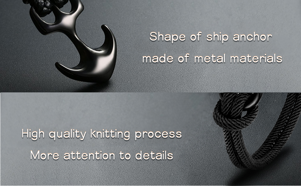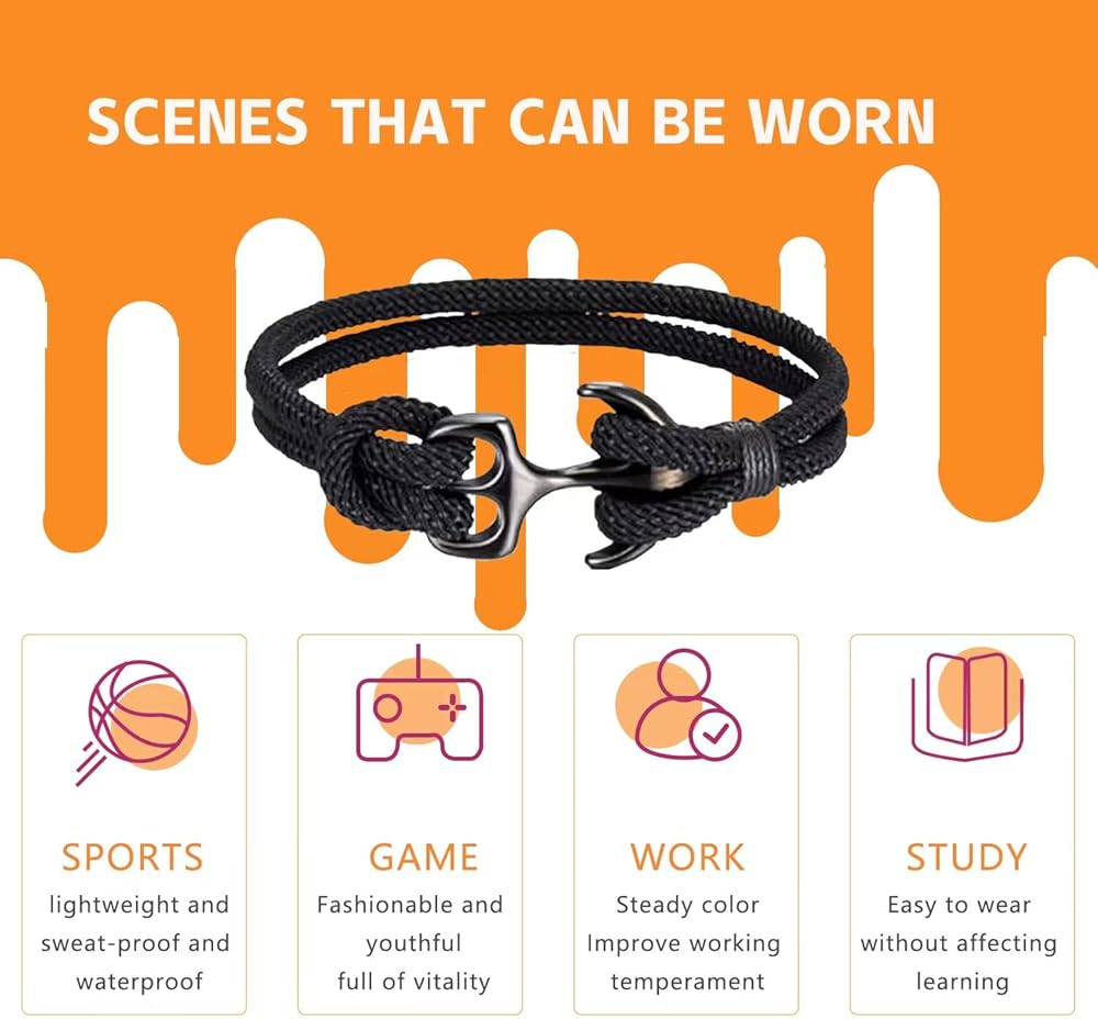 Material The length of the bracelet is 8.2 inches, the design of the boat anchor shows boldness and fashion, the nylon rope material, quick dry in water, can be worn for decades.