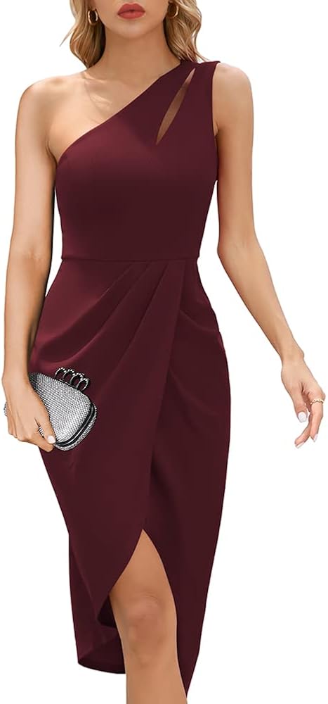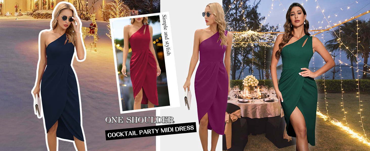 فستان متوسط الطول ملفوف بكتف واحد للمناسبات المتنوعة - فساتين ضيقة عالية الخصر بشكل جيد لحفلات الزفاف أو مناسبات الكوكتيل، أو العشاء التدريبي وأكثر من ذلك، مما يخلق أيضًا فستان الحفلات الكلاسيكي للفتيات المراهقات في الحفلات الموسيقية المدرسية، وحفلات العودة للوطن والتخرج. هذا الفستان الرسمي ضيق مثالي لفصل الصيف والخريف، وفي أوائل الربيع والشتاء، يمكنك ارتداؤه مع سترة أو معطف محبوك، والذي لن يصبح قديم الطراز أبدًا