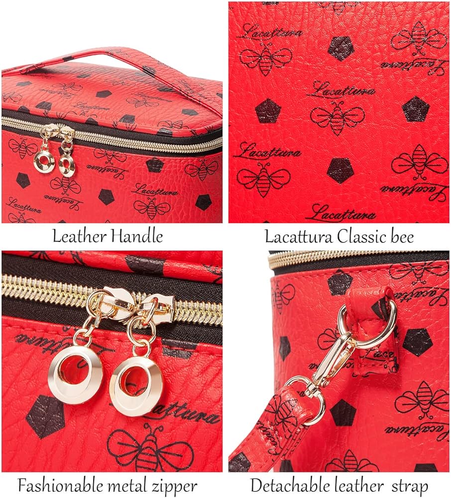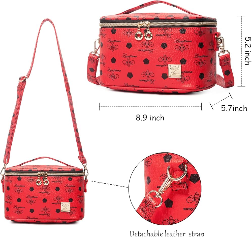 ★تصميم فريد: التصميم الفريد بنمط النحل الكلاسيكي يسلط الضوء على أنماط الموضة المختلفة. تضفي حقيبة مستحضرات التجميل المخصصة للسفر مظهرًا أنيقًا ومواكبة للموضة. إنها مثالية لقضاء عطلة طويلة ورحلة عمل وعطلات نهاية الأسبوع العائلية وتنظيم طاولة الزينة. كما أنها الهدية المثالية للعائلة أو الأصدقاء.