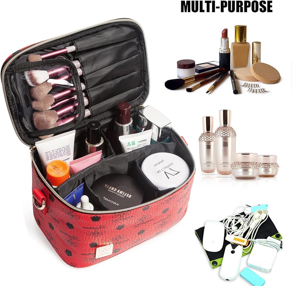 ★سعة كبيرة جدًا: تم تصميم حقيبة المكياج من طبقتين (11.6 بوصة طول × 8.8 بوصة عرض × 7.6 بوصة ارتفاع)، الطبقة الأولى 3.2 بوصة ارتفاع والطبقة الثانية 4.4 بوصة ارتفاع ولها طول وتوسع. يمكن لحقيبة مستحضرات التجميل الكبيرة تخزين جميع مستحضرات التجميل وأدوات النظافة النسائية، حتى مكواة تجعيد الشعر.توجد فواصل مبطنة قابلة للتعديل في الطبقة الثانية.اجعل تخزين مستحضرات التجميل المصنفة الخاصة بك سهل العثور عليه وإدارته.