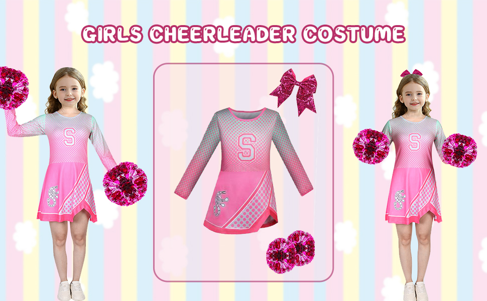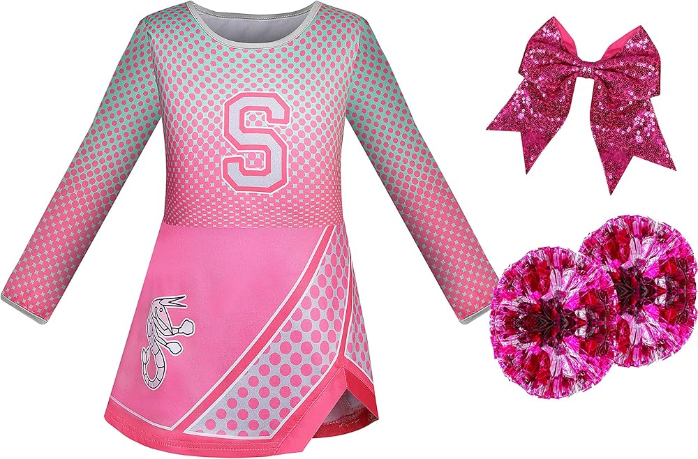 العبوة: فستان وردي للمشجع، واثنين من كرات بوم المشجعة، وحبل شعر مطابق