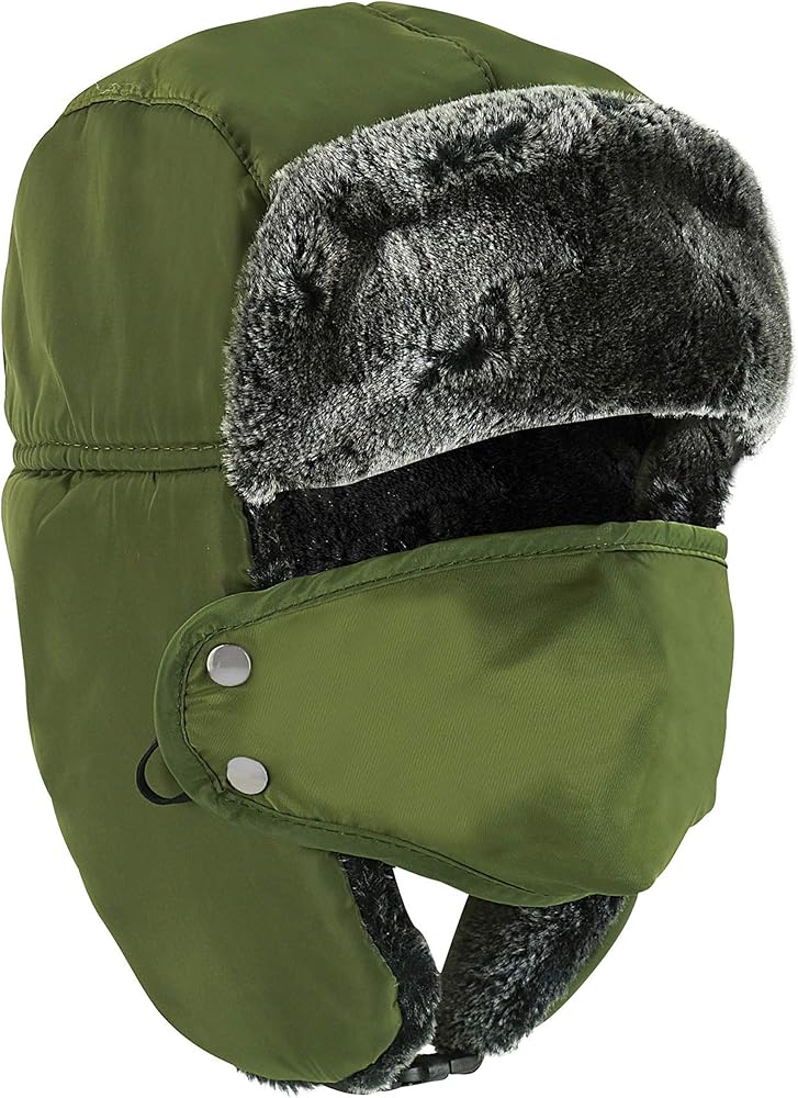 تصميم أنيق وأنيق - تأخذ قبعة جندي الشتاء هذه مظهر ushanka الروسي الأصلي، مع أغطية أذن عملية، وأشرطة ذقن قابلة للتعديل، وقناع مقاوم للرياح قابل للإزالة.