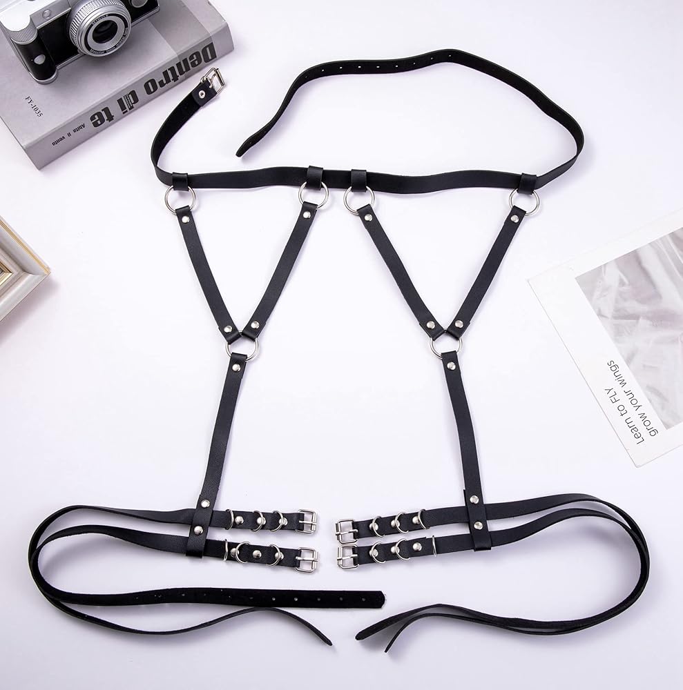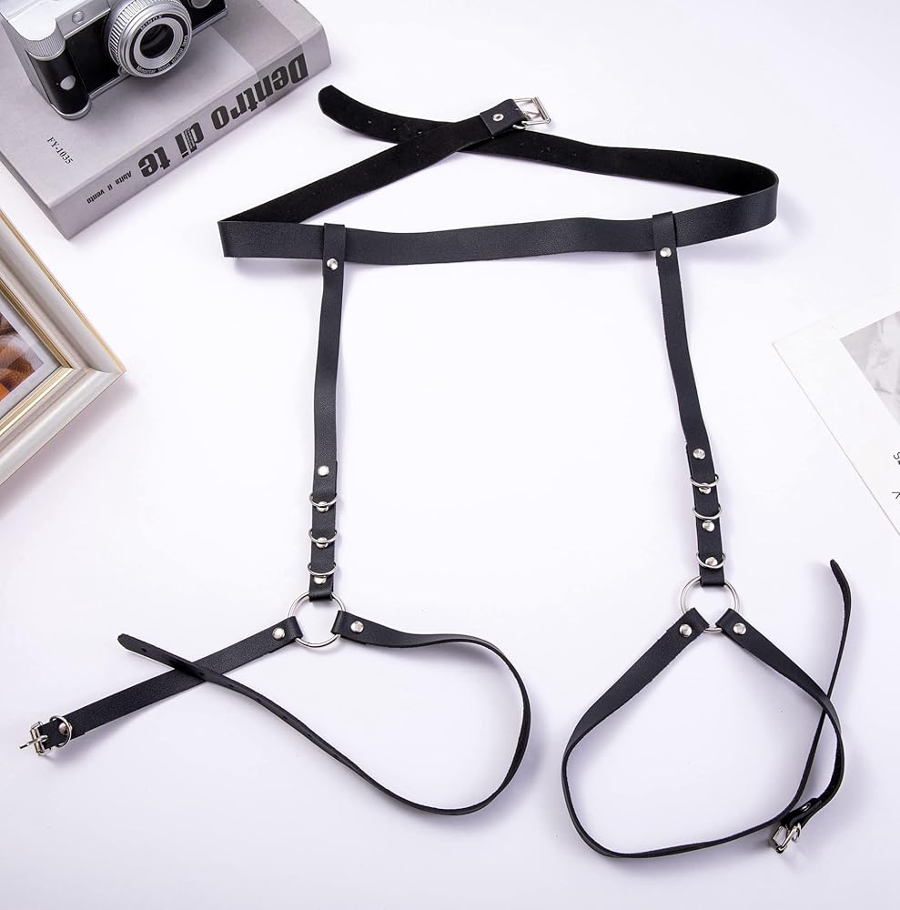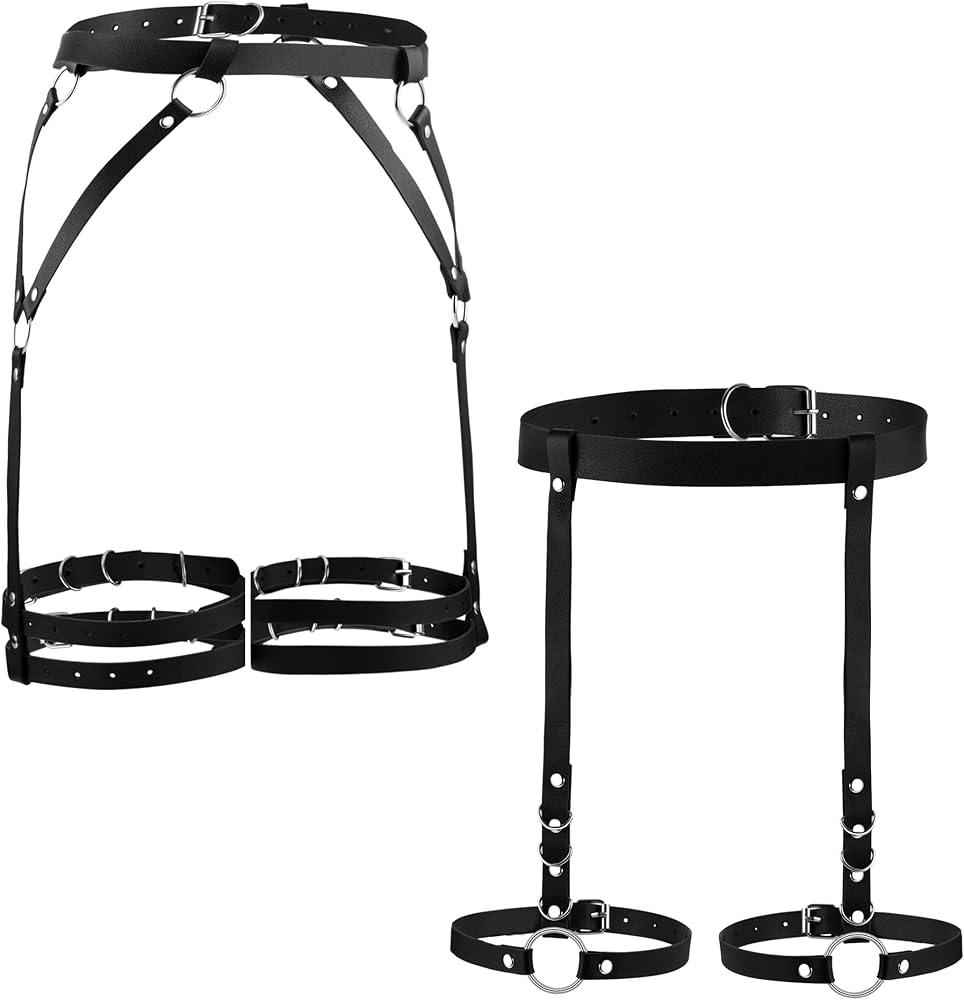 مجموعة سلسلة الفخذ السوداء للخصر - قطعتان من سلسلة الفخذ الجلدية ذات الأشكال المختلفة، تظهر جسمك بشكل أفضل، وتجعلك أكثر جاذبية عند الانضمام إلى حفلات الرقص، والنوادي الليلية، والحفلات التنكرية والمناسبات الأخرى.