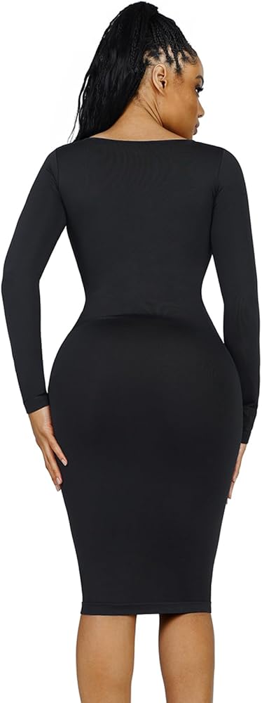 فساتين FeelinGirl النسائية طويلة الأكمام بتصميم ريترو بودي كون للنساء فستان طويل لتشكيل الجسم مع حمالة صدر قابلة للإزالة
