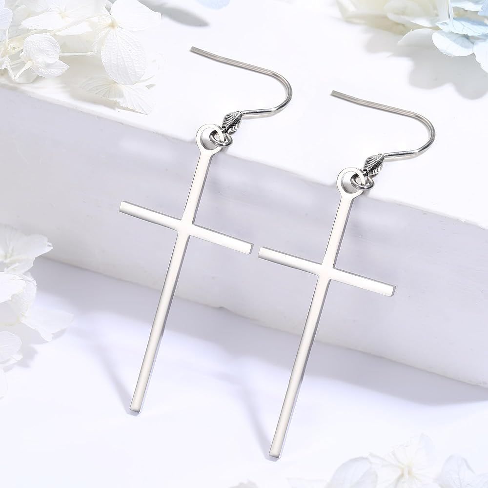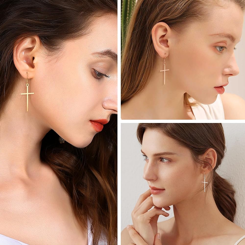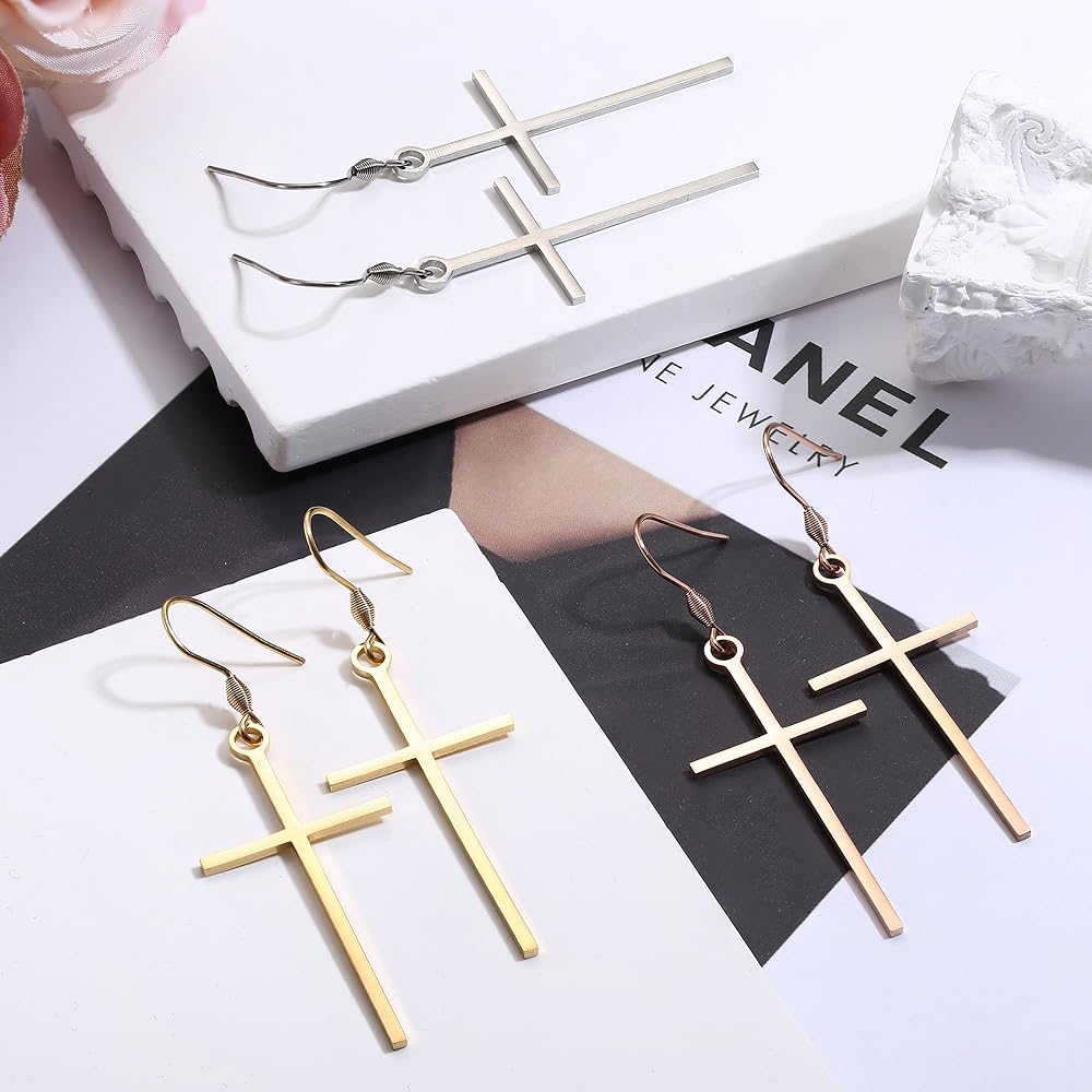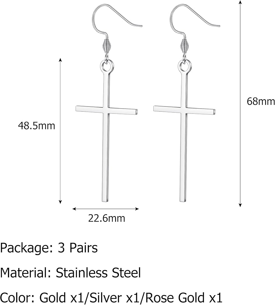 HAIAISO 3 أزواج من الأقراط المتقاطعة المصنوعة من الفولاذ المقاوم للصدأ أقراط متدلية كلاسيكية من الذهب الوردي والذهبي والفضي مجوهرات متقاطعة بسيطة للنساء