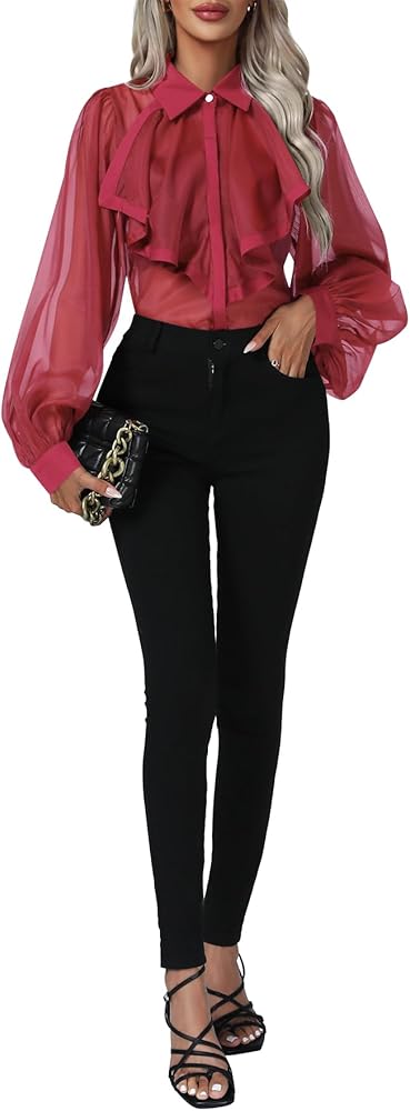 مطابقة: بلوزة طويلة الأكمام مثالية للارتداء مع السراويل أو الجينز أو السراويل الضيقة أو السراويل القصيرة أو التنانير أو الحقيبة أو القلادة أو الأقراط، وتظهر بشكل مثالي خط جسمك، وتضيف المزيد من الموضة والمظهر العصري.
