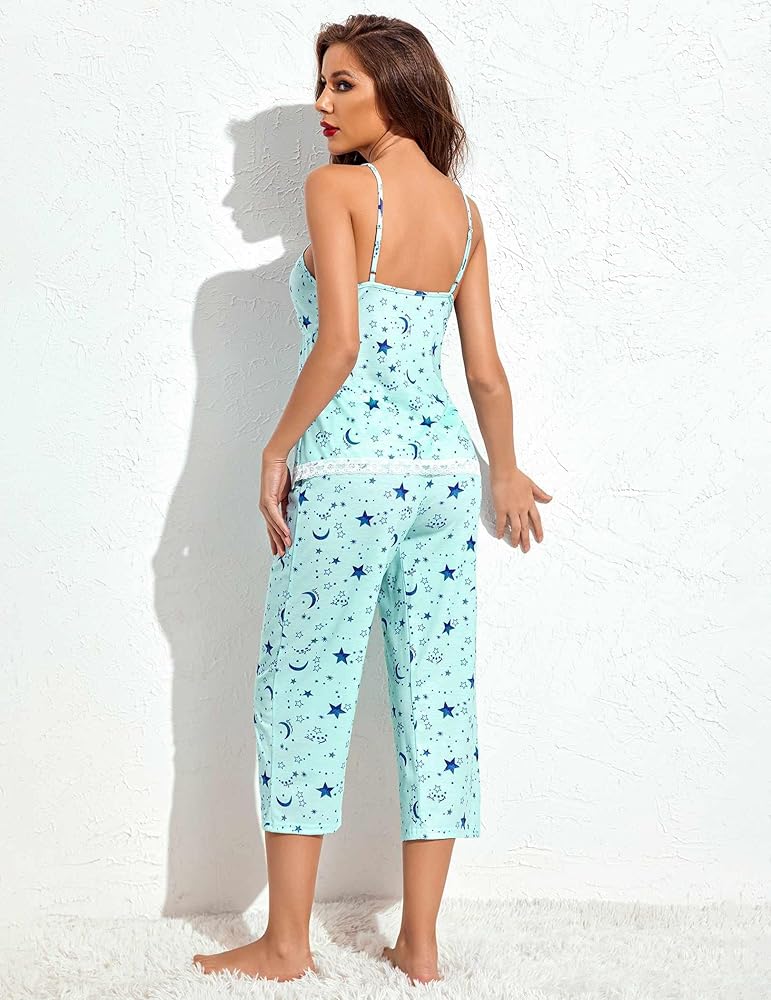 المواد: أطقم بيجامات كابري للسيدات مصنوعة من نسيج فائق النعومة ومريح، وصديق للبشرة. منتج رائع لمجموعة ملابس النوم أو مجموعة ملابس النوم أو مجموعة البيجامة.