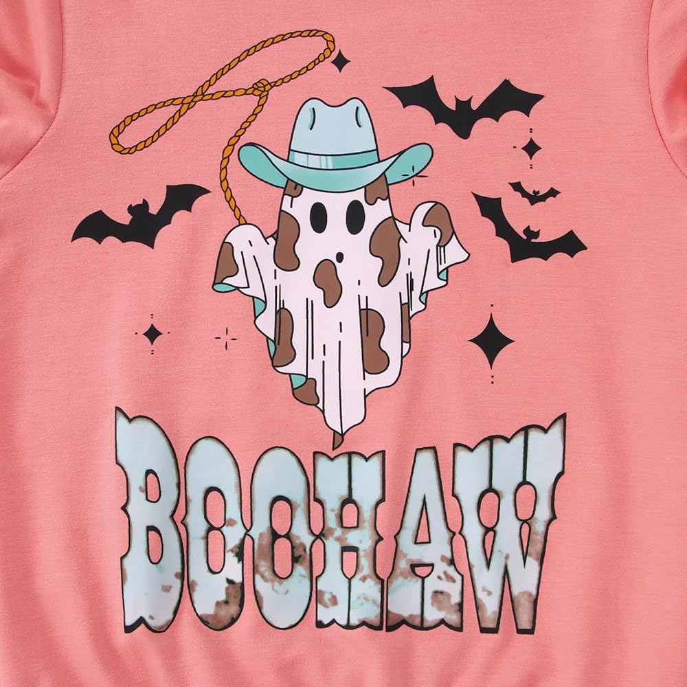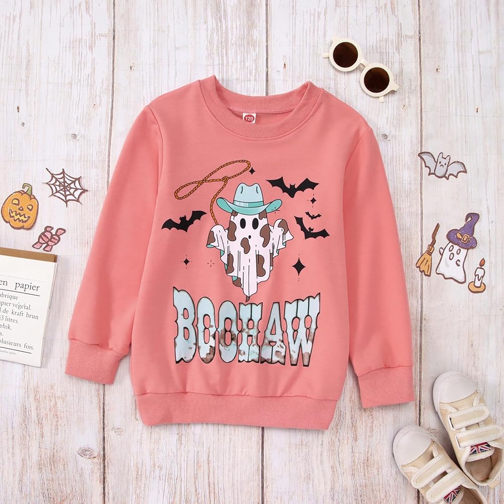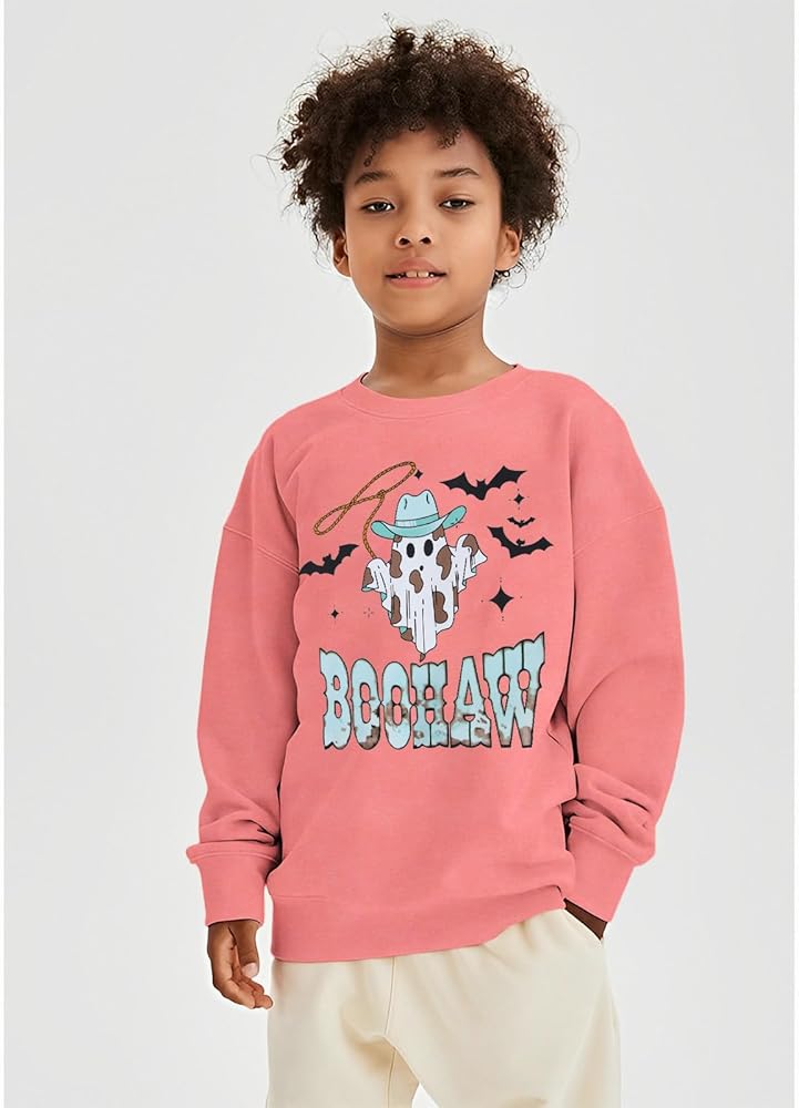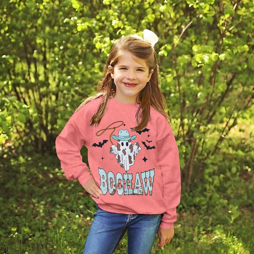 👻التصميم: بلوفر للهالوين للفتيات والأولاد، سويت شيرت رعاة البقر للهالوين للأطفال، يتميز بطباعة حروف بوهاو كلاسيكية، رسم شبح رعاة البقر والخفاش، رقبة دائرية، قمصان ثقيلة فضفاضة بأكمام طويلة، مما يسمح لأطفالك الصغار بإظهار روحهم الاحتفالية بطريقة عصرية.