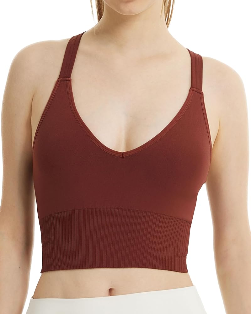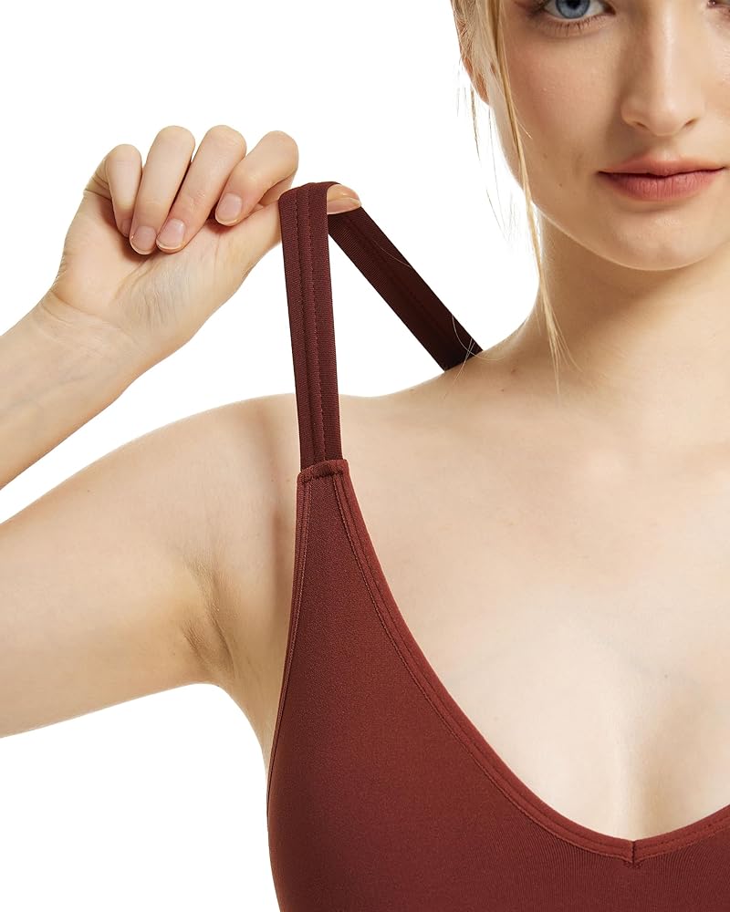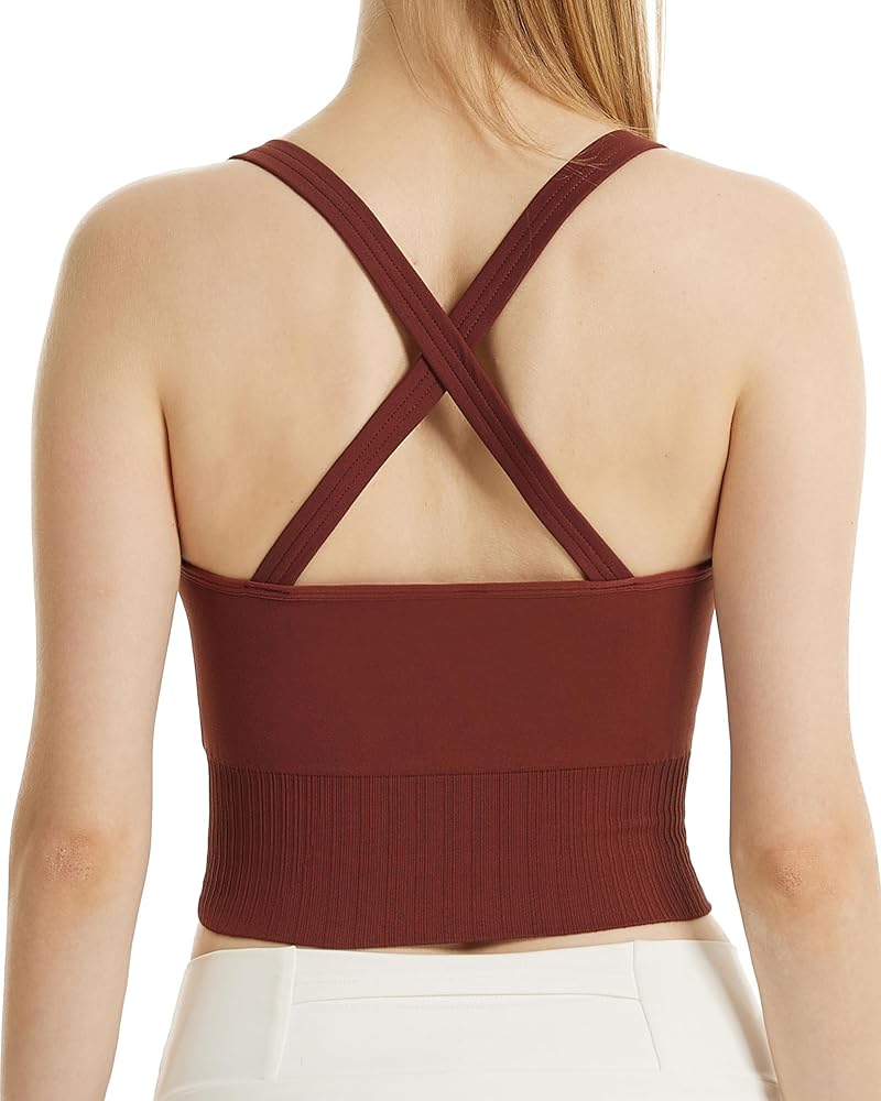 【ظهر بأشرطة ورقبة على شكل حرف V】أشرطة متقاطعة لمزيد من الدعم، ورقبة واسعة، وضغط على مستوى الدخول.