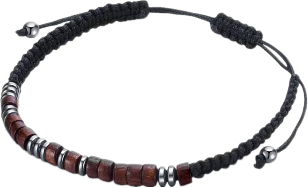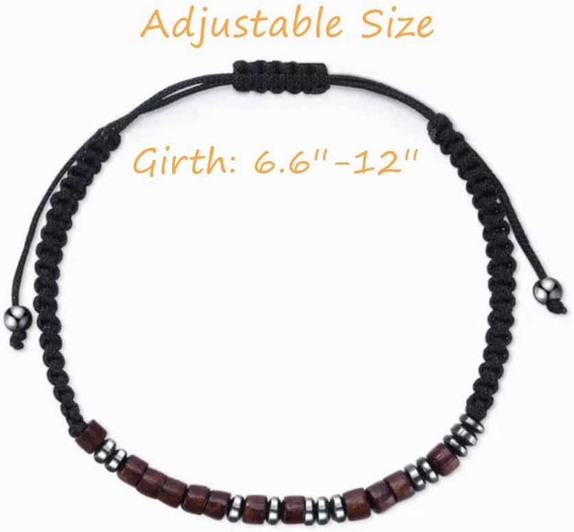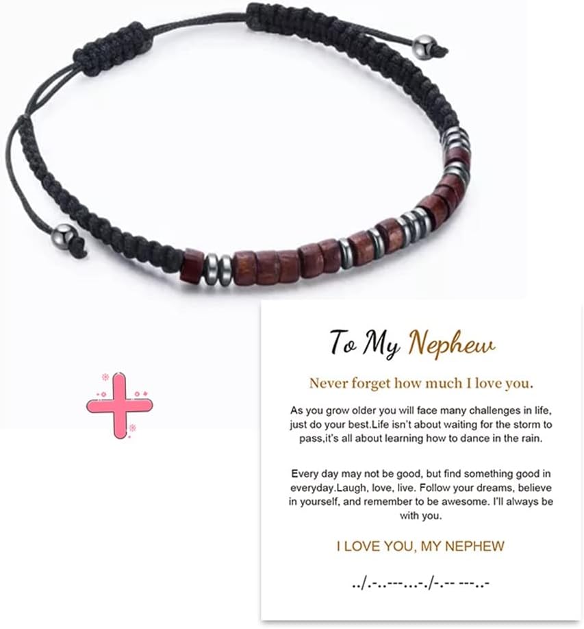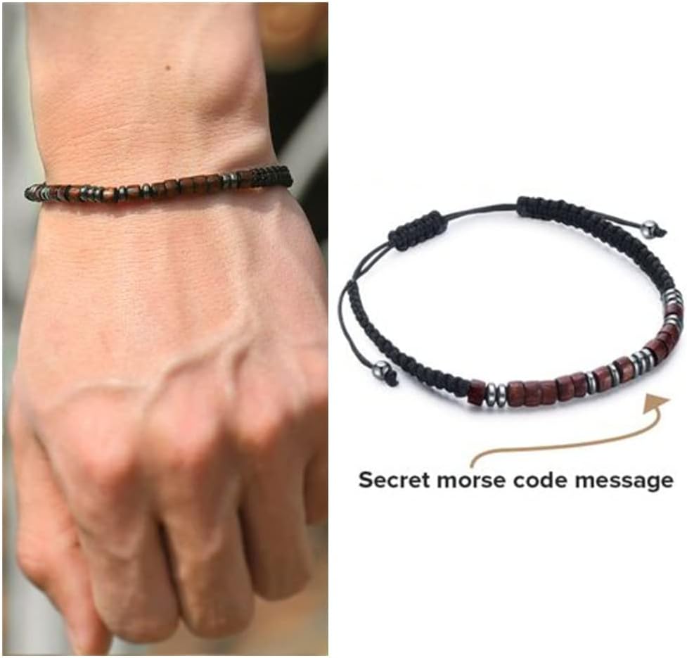 ♥ أساور كود مورس♥ السوار المصنوع يدويًا منسوج من حبل نايلون ومربوط بخرز من الخشب الطبيعي وخرز الهيماتيت. خالي من الرائحة وخفيف الوزن، ويمكن للأشخاص ذوي البشرة الحساسة أيضًا استخدامه بأمان.