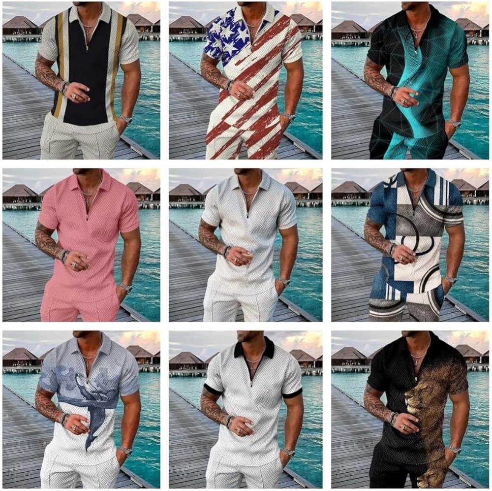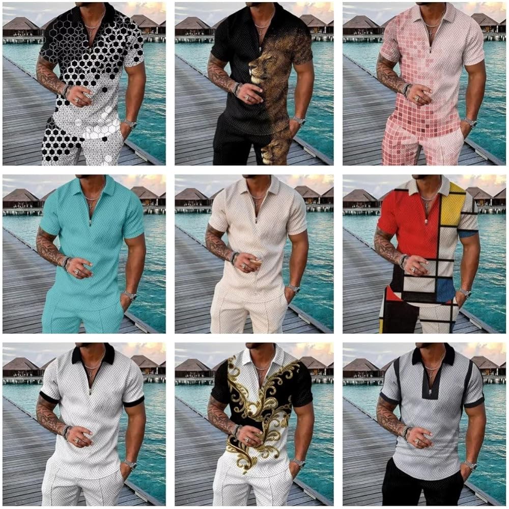 المميزات: طباعة ثلاثية الأبعاد، عصرية وجديدة، طقم قميص بولو بسحاب كاجوال، سويت شيرت بولو بأكمام قصيرة نصف سحاب، سروال قصير، جيبان جانبيان، تصميم خصر مرن مع رباط للحفاظ على الأداء العالي في الرياضة.
