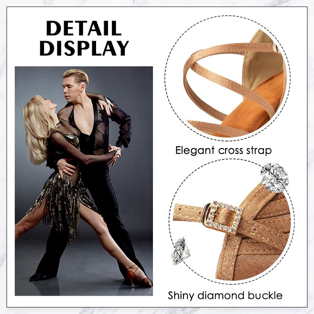 • 🌻التصميم والمواد: تصميم كلاسيكي أنيق وسخي. أحزمة طول قابلة للتعديل تتوافق مع إبزيم سريع التحرير من حجر الراين اللامع. جزء علوي من الساتان عالي الجودة، ناعم وحريري، نعل أوسط سميك من اللاتكس يجعل الحذاء أكثر متانة وراحة، ونعل داخلي عالي الجودة، وبطانة ناعمة مسامية، ملمس ناعم للغاية. يجعلك تشعرين بحرية كبيرة وراحة عند ارتدائه، ويحافظ على رقصك المذهل.