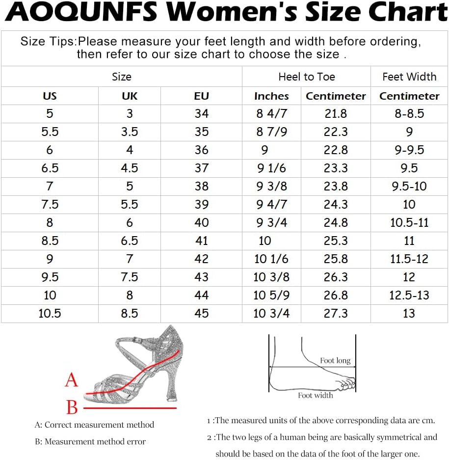 • 🌻أحذية الرقص اللاتيني AOQUNFS: صناعة متقنة ومرنة ومريحة. مثالية للهواة ومبتدئي الرقص والمحترفين في اللاتينية والسالسا والسامبا وتشا تشا والرومبا وممارسة الأداء. نعل من الجلد السويدي المضاد للانزلاق يتمتع بمقاومة جيدة للانزلاق وتوازن، وخفيف الوزن مقاومة التآكل، يمكن أن تتحمل ضغط الانحناء المتعدد دون ضرر.