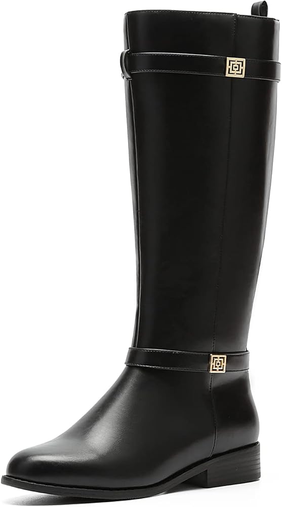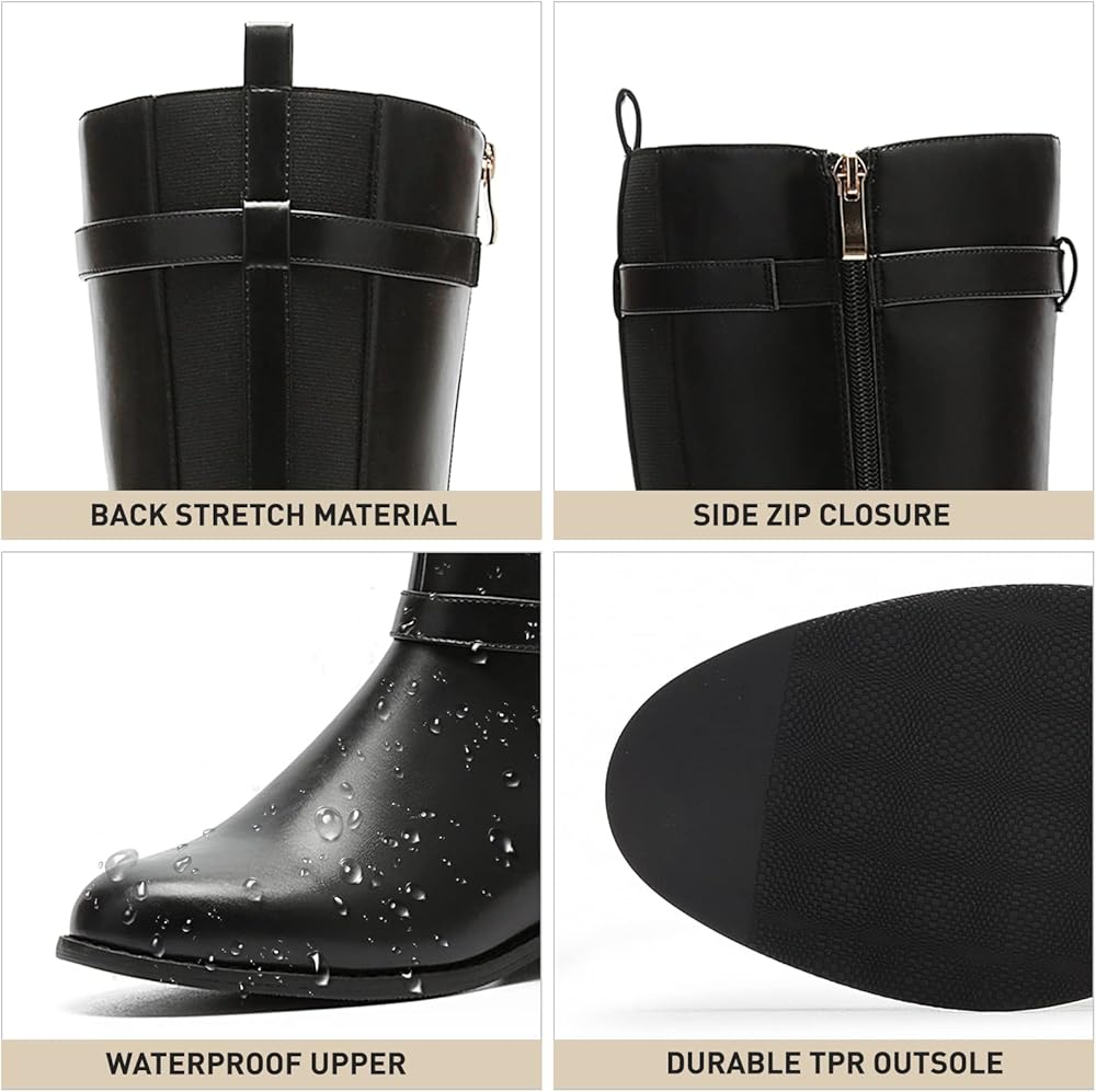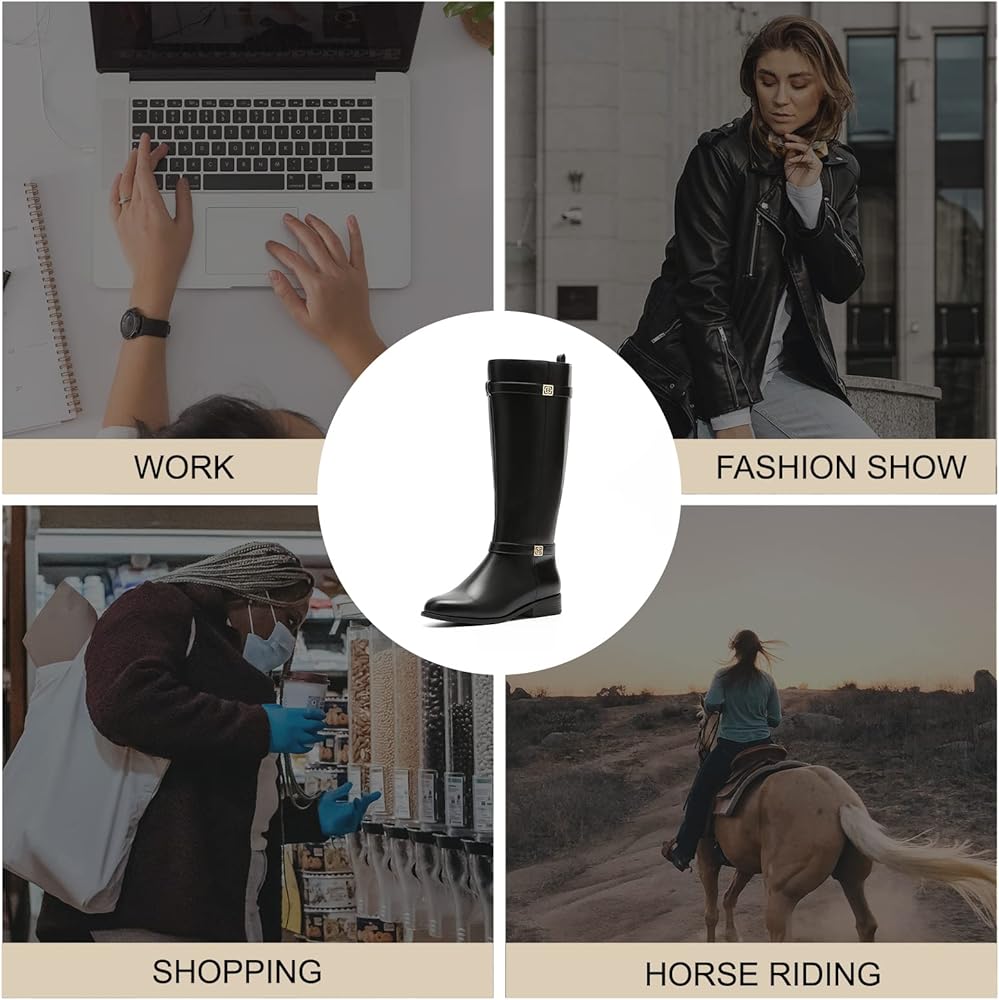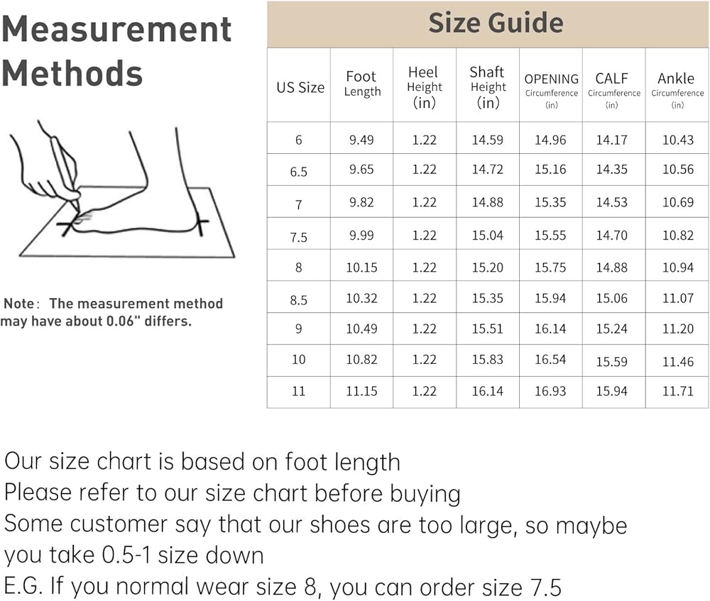 • التصميم: توجد أبازيم مربعة عند الكاحل والساق لسهولة تعديل العرض الذي يناسب ساقك. يضيف التصميم البسيط إلى المظهر الأنيق والأنيق للأحذية.