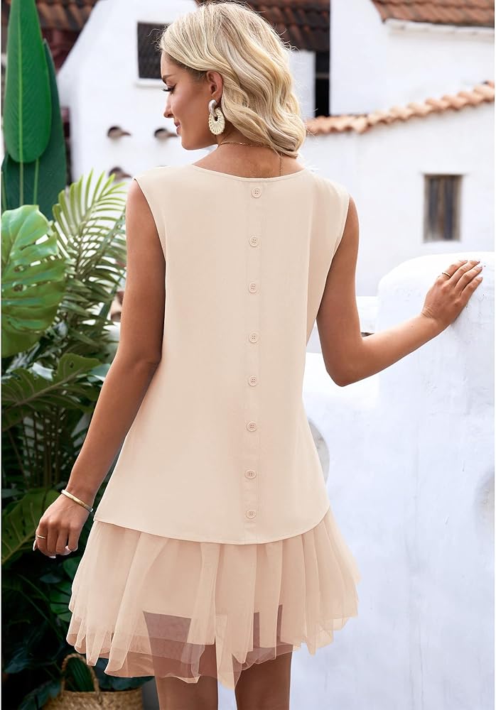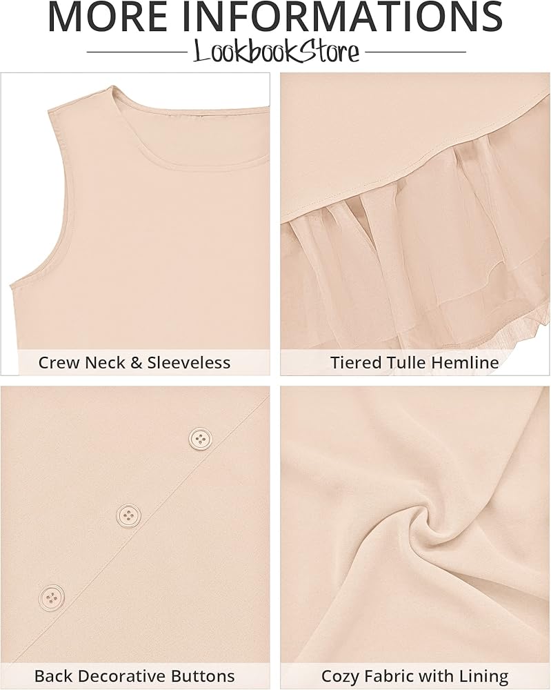 يخلق خط العنق الدائري والتصميم بدون أكمام أساسًا كلاسيكيًا وبسيطًا لهذه الفساتين للنساء 2023، مما يجعلها مثالية لمجموعة متنوعة من المناسبات. لون ثابت متعدد الاستخدامات يضفي لمسة نهائية على المظهر بسهولة.