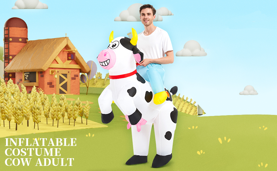 زي KOOY القابل للنفخ للبالغين، زي راكب البقر للبالغين، أزياء الهالوين للرجال/النساء، أزياء النفخ
