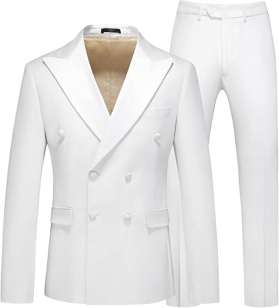 بدلات MOGU الرجالية المكونة من 3 قطع مزدوجة الصدر بمقاس نحيف باللونين الأسود والأبيض لحفلات الزفاف والعشاء وحفلات التخرج