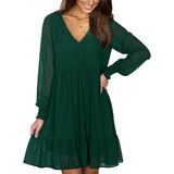فساتين مكشكشة بأكمام طويلة للنساء: فستان شيفون مكشكش، فستان متوسط الطول بأكمام مكشكشة، فساتين نسائية بأكمام مكشكشة، فساتين شيفون كاجوال وأنيقة للنساء، فستان كاجوال من الشيفون بطول الركبة، فستان كاجوال أخضر طويل الأكمام للنساء، قمصان كاجوال لضيوف الزفاف للنساء فستان الخريف والشيفون المتأرجح للنساء، إنه خيار جيد للربيع والصيف والخريف والشتاء.