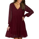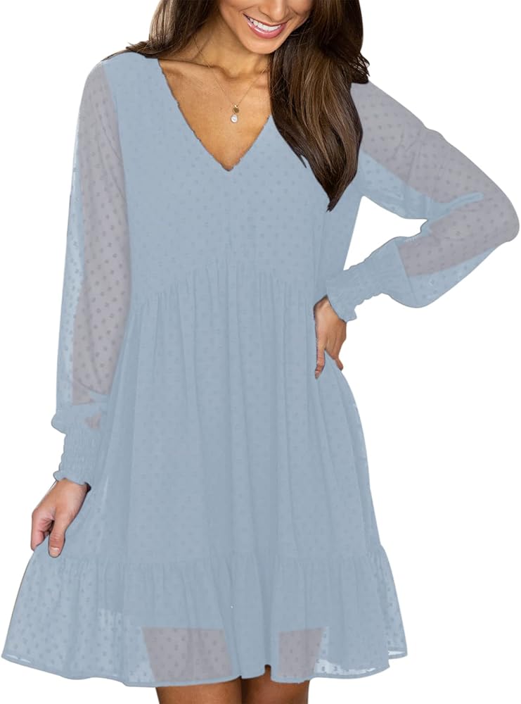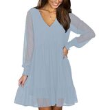 فستان نسائي من الشيفون المتأرجح مكشكش: فستان متأرجح برقبة على شكل حرف V وأكمام طويلة، فساتين متأرجحة للنساء بطول الركبة، فستان حفلات متأرجح للنساء، تصميم فضفاض بأكمام فانوس، أظهر ذراعيك النحيفة، فساتين لطيفة للنساء في الخريف، فساتين شيفون فضفاضة للنساء، فضفاضة فستان شيفون مناسب، فستان ألين ميني بأكمام طويلة، فستان حفلات للنساء بأكمام طويلة، فستان ألين ميني فلوي.