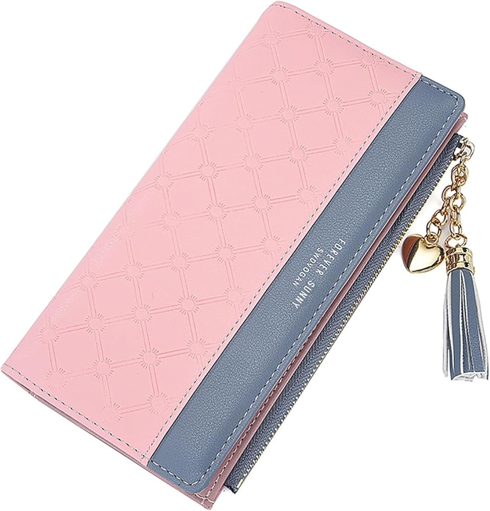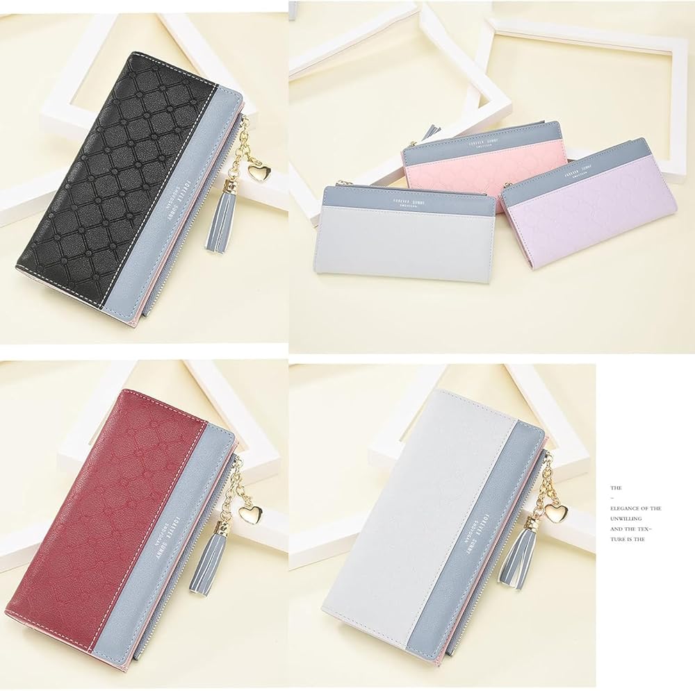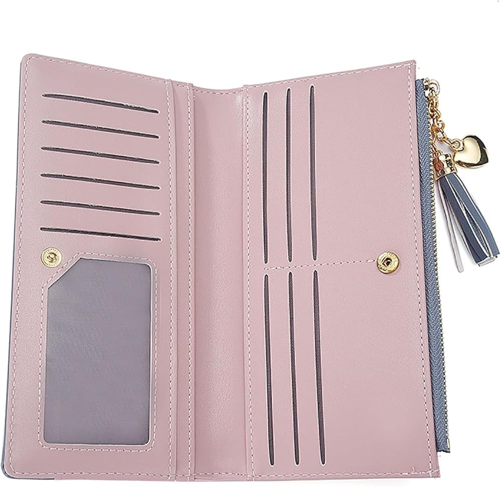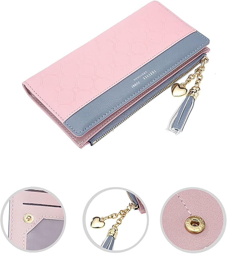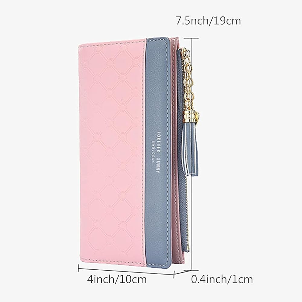 محفظة للنساء من الجلد، منظم بطاقات الائتمان، محافظ للفتيات بسحاب كبير وطويل للعملات المعدنية