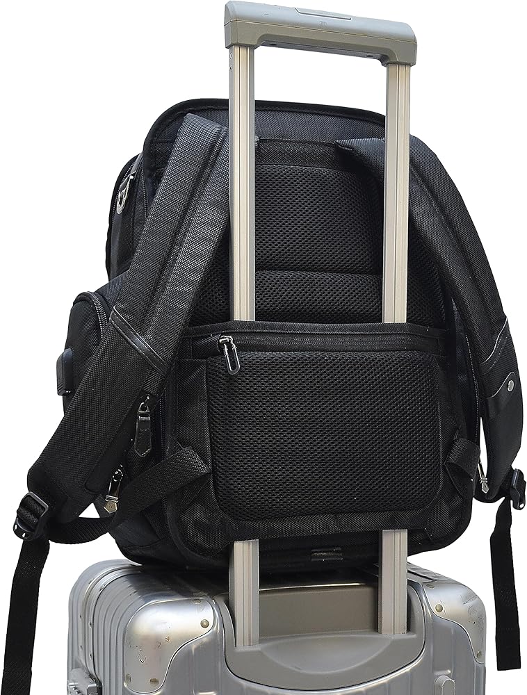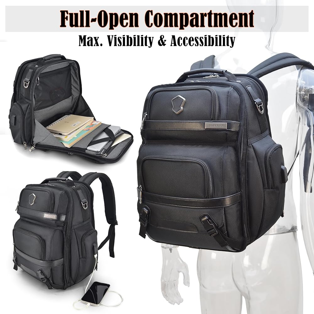 ✔️ شديدة التحمل: حقيبة ظهر للاب توب مصنوعة من النايلون الأسود مع الجلد متينة مثل الأمتعة الناعمة. القماش الباليستي المتين 1680D يجعلها حقيبة ظهر للعمل مقاومة للماء للرجال. - حقائب ظهر راقية.