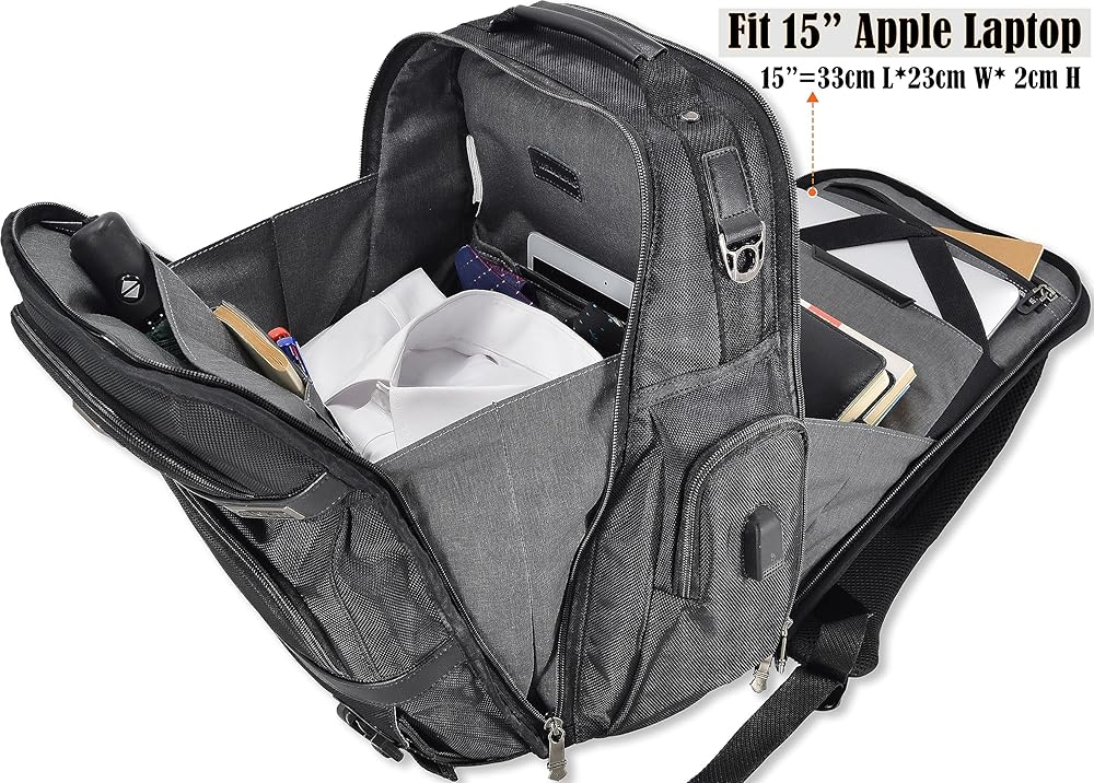 ✔️ حافظة لاب توب مقاس 15 انش: حقيبة الظهر للرجال أنيقة وأنيقة وتحافظ على شكلها ولا تنهار أو تنخفض مثل معظم حقائب الظهر الذكية. أفضل حقيبة ظهر ذكية هي حقيبة ظهر للسفر والأعمال.