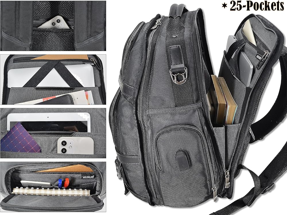 ويلكينلاند شنطة ظهر للاعمال التنفيذية، شنطة ظهر تقنية، شنطة ظهر للرجال، شنطة ظهر جلدية احترافية للرجال، شنطة ظهر للاعمال 15 انش للنساء، شنطة ظهر للابتوب للرجال، شنطة ظهر تيك