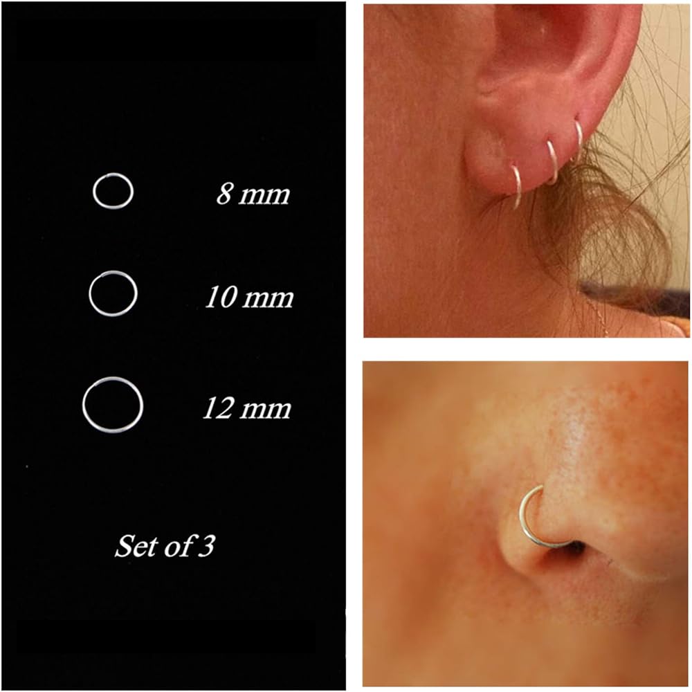 تشمل العبوة: 3 مقاسات مختلفة، يمكن استخدامها كحلقة أنف، وحلقة شفاه، وأقراط، وأقراط غضروف، وثقب أذن تراغوس، وأقراط وحلقة حاجز.