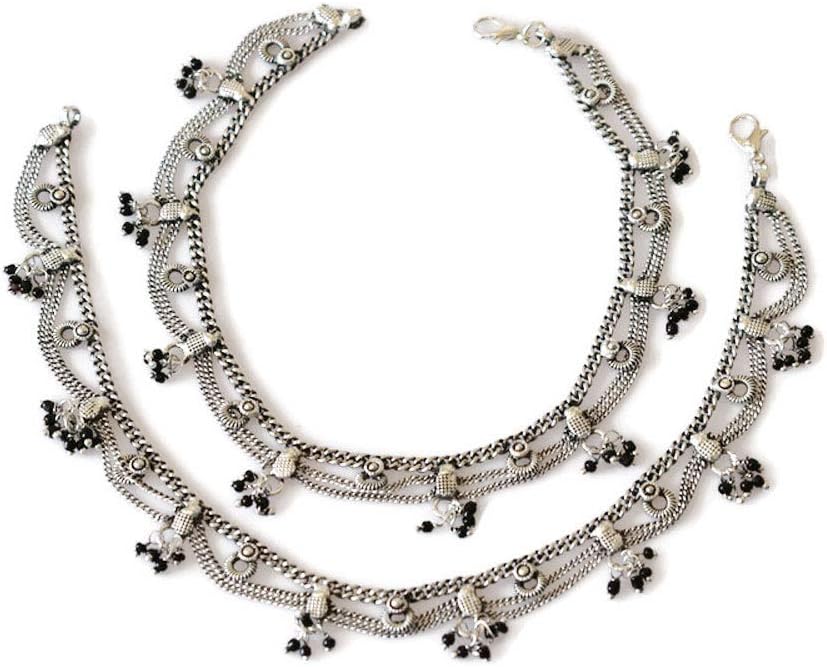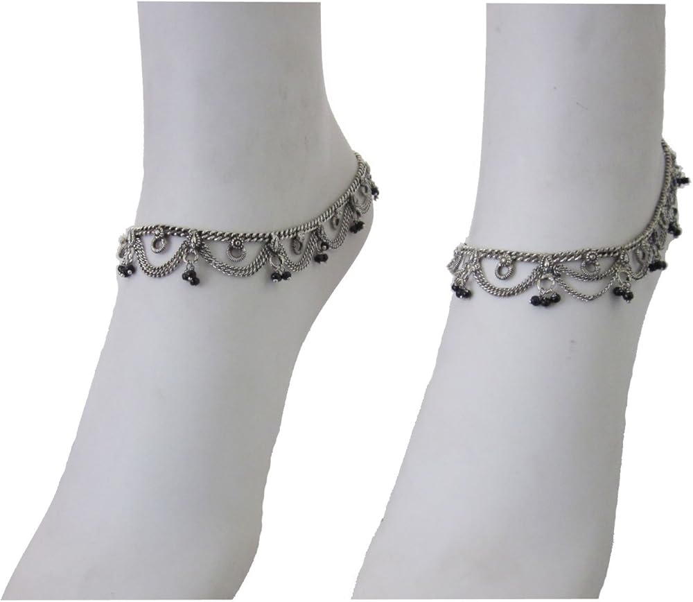 سلاسل نحاسية ملحومة بطبقات مع قصاصات نحاسية دقيقة محببة للحكة. لمسة نهائية مؤكسدة مطلية بالفضة. وصلة تمديد سلسلة قابلة للتعديل لتناسب مقاس الكاحل الأكبر. سوف تستقر الخلخال الهندية منخفضة على القدمين/الكاحل