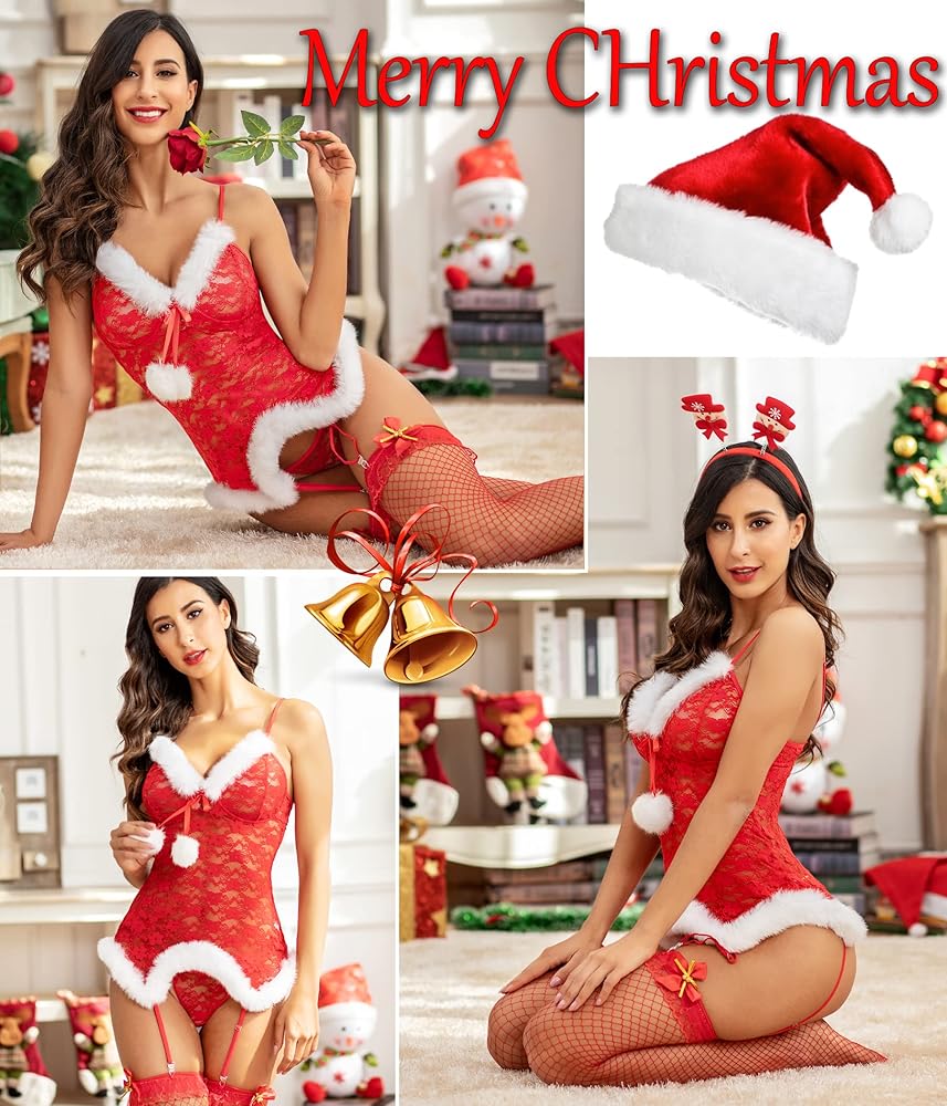 • 🎅التصميم: مزين بالريش، إغلاق بخطاف وعين، رقبة على شكل حرف V وزخرفة فيونكة مثيرة مخيطة بصوف عيد الميلاد يمكن أن تظهر منحنياتك المذهلة تمامًا وتجعلك أكثر جاذبية في المهرجان الخاص مرة واحدة في العام.