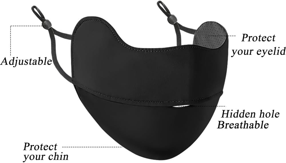 قناع وجه للحماية من الأشعة فوق البنفسجية. يحجب 98% من الأشعة فوق البنفسجية الطويلة والمتوسطة. مريح، بارد، ناعم، خفيف الوزن، مسامي، ماص للرطوبة وسريع الجفاف ليبقيك نشيطًا طوال اليوم. فتحة غير مرئية، أكثر مسامية، بدون ضباب.
