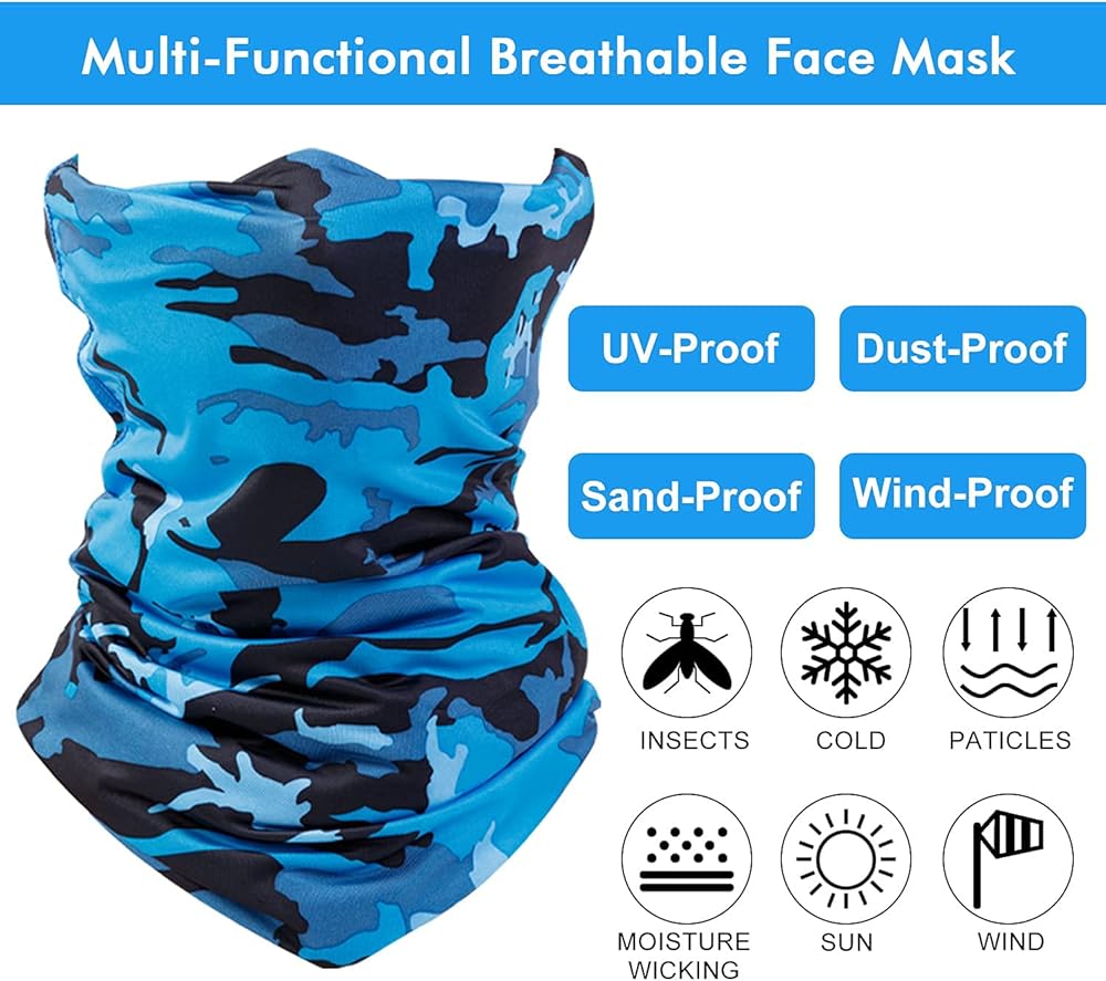قناع وجه للحماية من الشمس من الأشعة فوق البنفسجية برقبة قناع واقي من الرياح رجل/النساء وشاح خارجي واقي من الشمس منديل قابل للتنفس بالاكلافا (5 قطع) تمويه