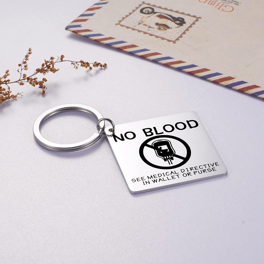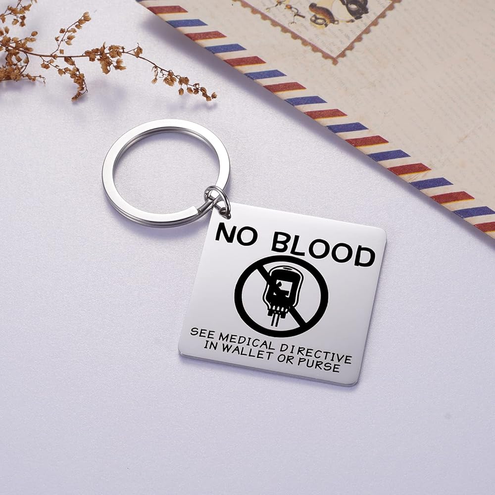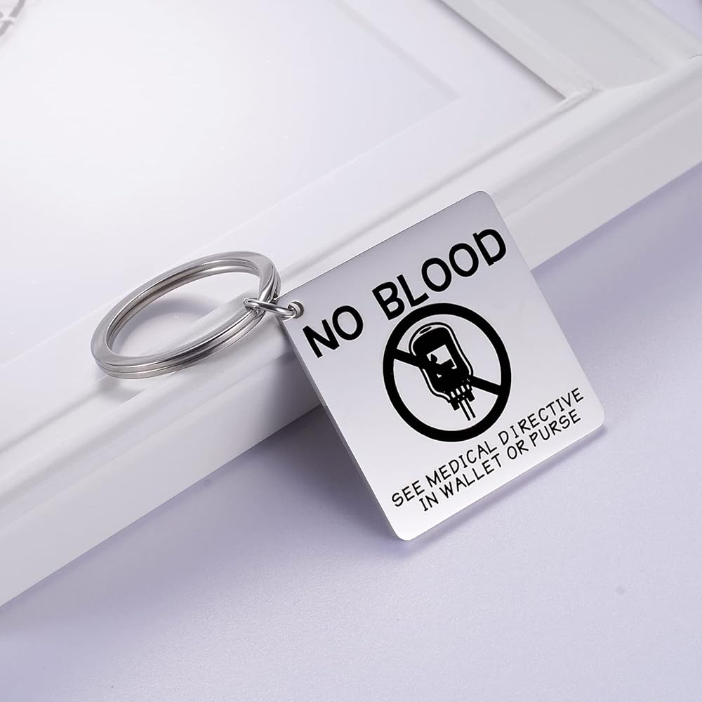 سلسلة مفاتيح بدون دم - كلمات محفورة "No Blood ، انظر التوجيهات الطبية في المحفظة أو المحفظة"