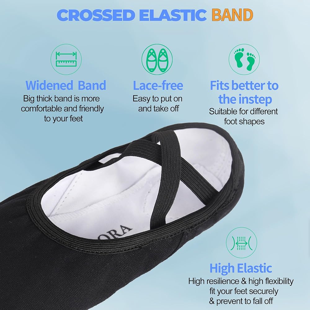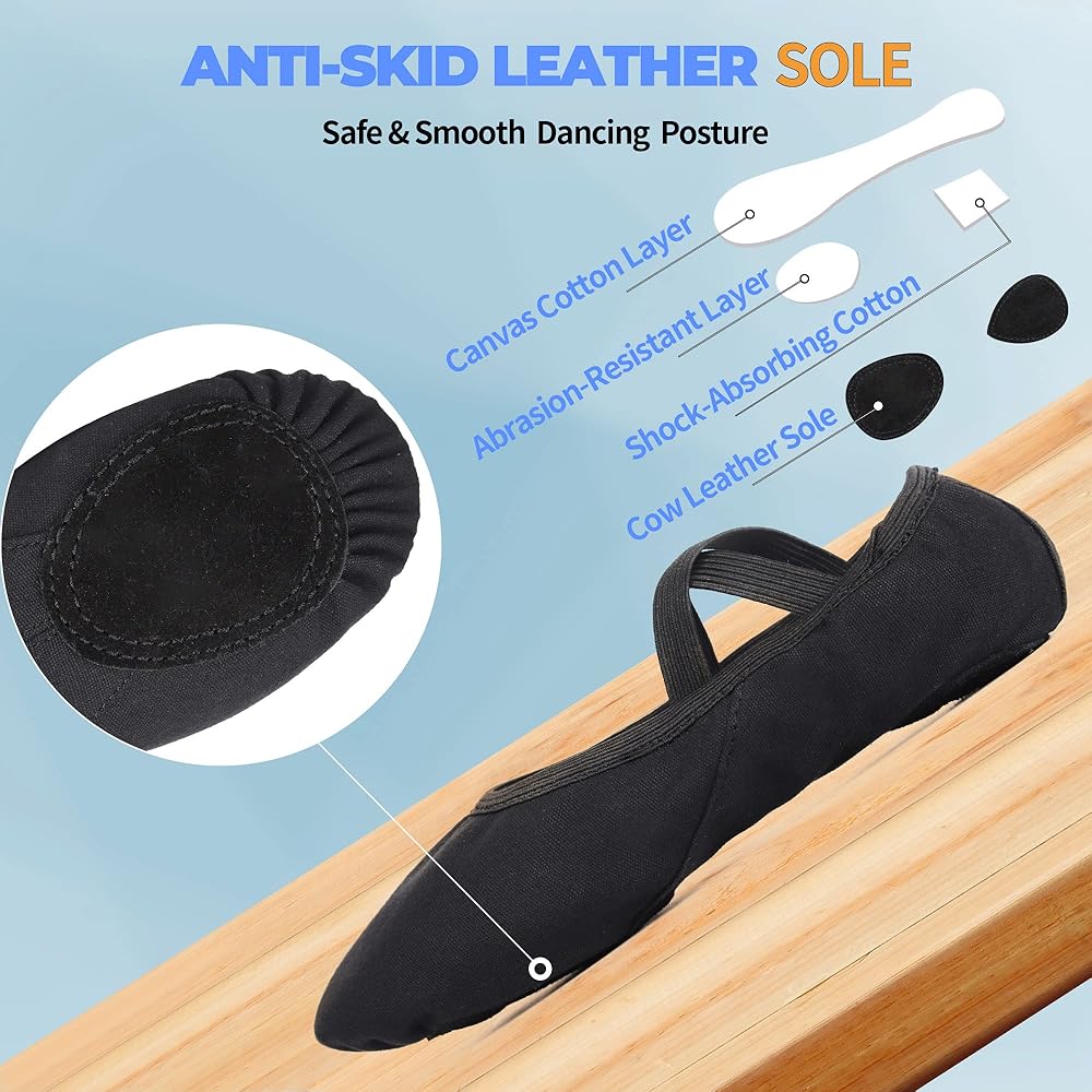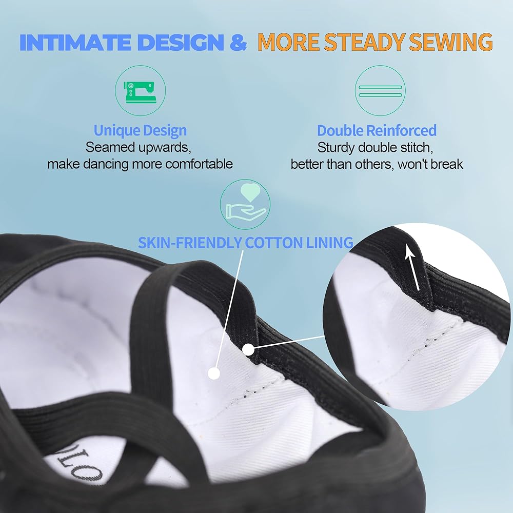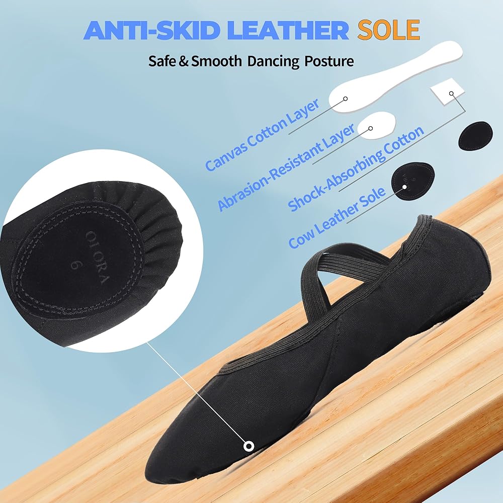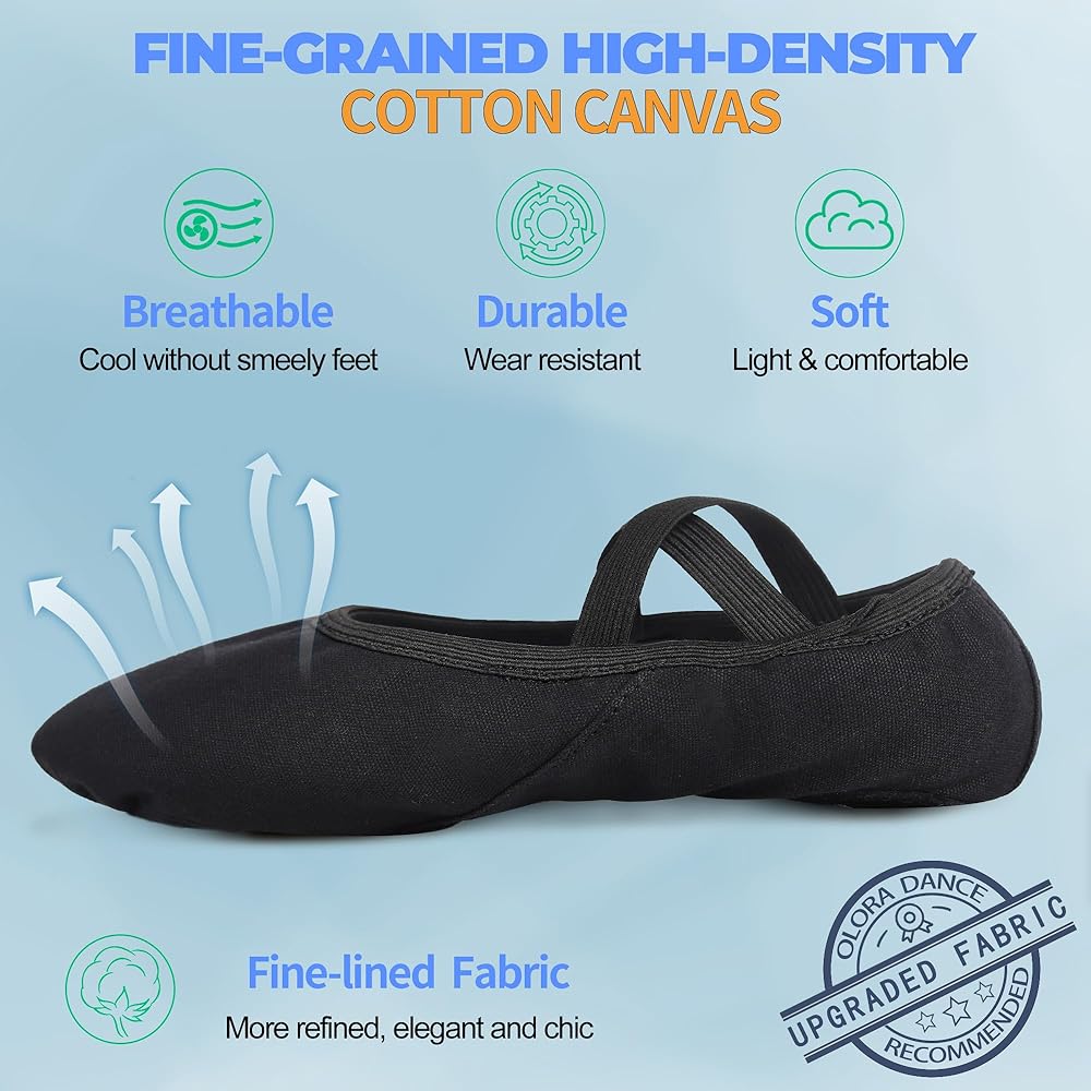أداء عالٍ: رقص الباليه يدور حول التوازن والوضعية. لا يمكنك الحصول على كليهما إلا إذا كان لديك زوج من أحذية رقص الباليه المريحة والملائمة. تتميز أحذية الرقص OLORA بنعل من جلد البقر مضاد للانزلاق مع خط علوي مرن 360 درجة وشريط مطاطي عريض وعالي الجودة في الجزء العلوي يغطي القدم تمامًا مثل الجورب لضمان عدم السقوط.