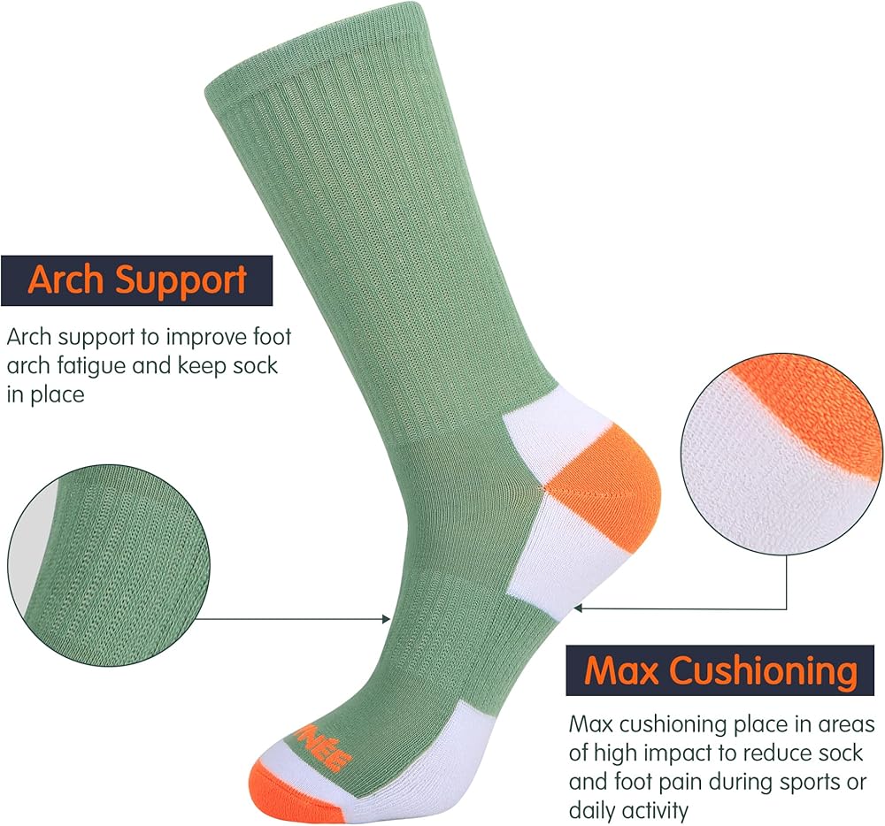 الأداء: أقصى قدر من التوسيد - أقصى مكان للتوسيد في المناطق ذات التأثير العالي لتقليل آلام الجورب والقدم أثناء ممارسة الرياضة أو الأنشطة اليومية. جيب كعب عميق مصمم هندسيًا لتوفير ملاءمة حقيقية أثناء الارتداء. دعم قوس القدم - دعم قوس القدم لتحسين إجهاد قوس القدم والحفاظ على الجورب في مكانه. كعب معزز وأصابع القدم معززة في الكعب وأصابع القدم توفر المتانة في مناطق الضغط العالي لتحسين عمر المنتج بشكل كبير.