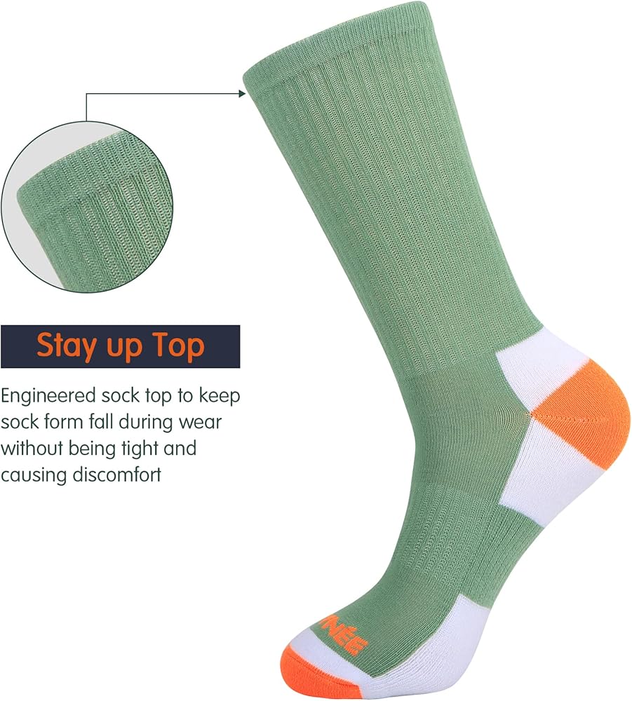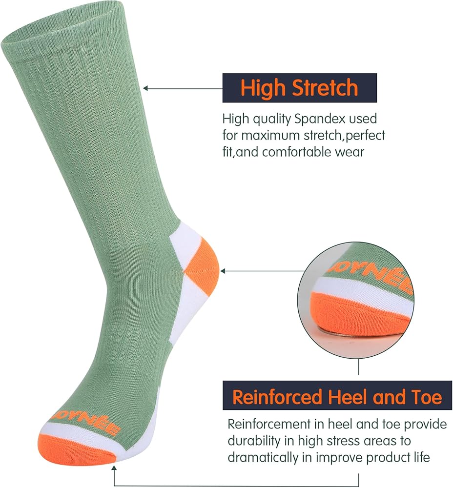 جوارب رجالية عالية الجودة: مصنوعة من 95% بوليستر، 5% سباندكس. تتميز الجوارب الرجالية لدينا بأنها قوية ومتينة وجيدة التهوية بما يكفي للحفاظ على بشرتك لتبقيك جافًا وراحًا. نظام نقل الرطوبة يطرد العرق بعيدًا عن الجسم.