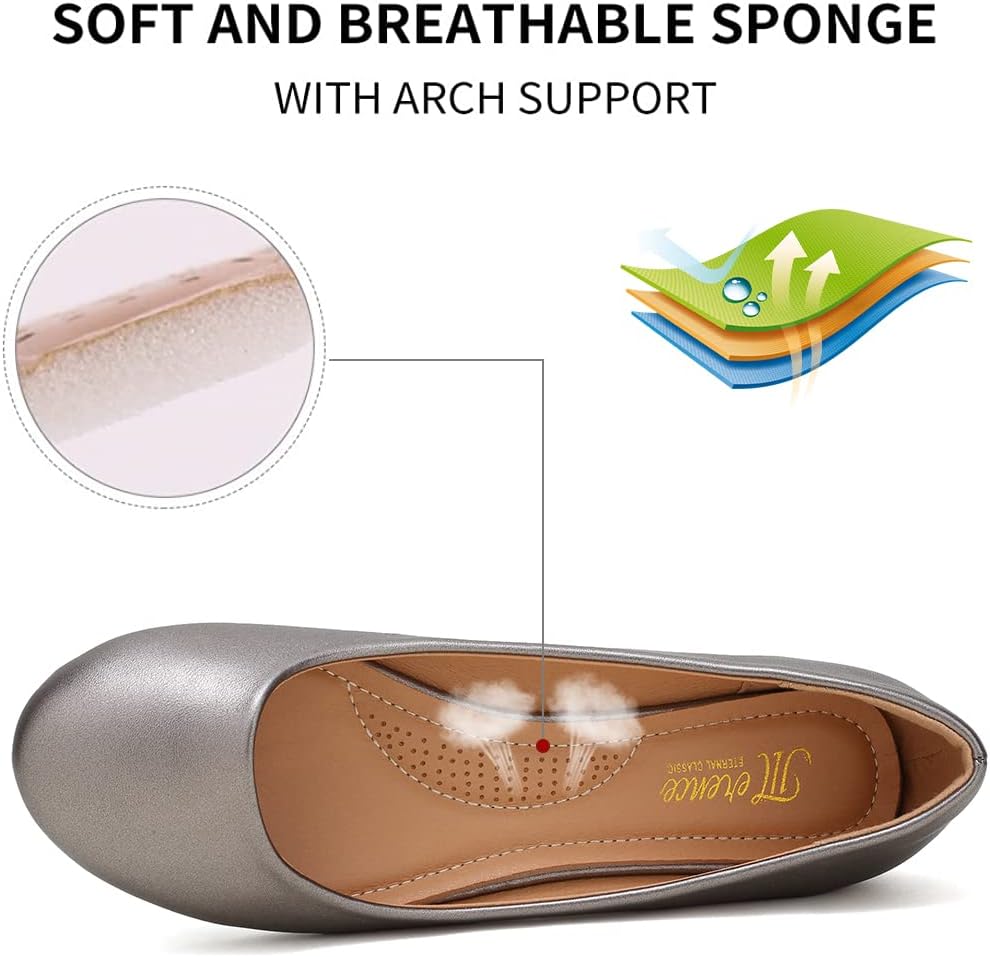 مريحة: أحذية الباليه المسطحة البسيطة والأنيقة هذه مصنوعة من الجلد السويدي الدقيق والبولي يوريثان الحائز على براءة اختراع والمطاط، أكثر راحة للارتداء اليومي.