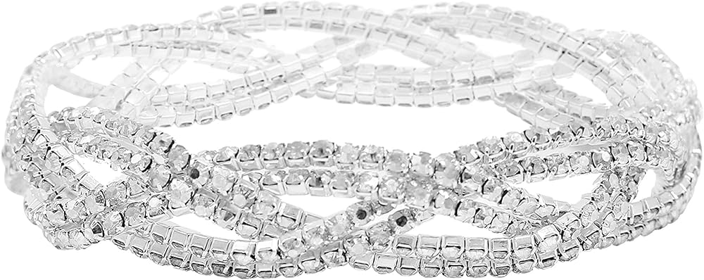 سوار حجر الراين الفضي الجميل هذا مصنوع من 6 صفوف من الأساور الكريستالية الصغيرة القابلة للتمدد، بسيط وأنيق، خفيف الوزن، سهل الارتداء والخلع.