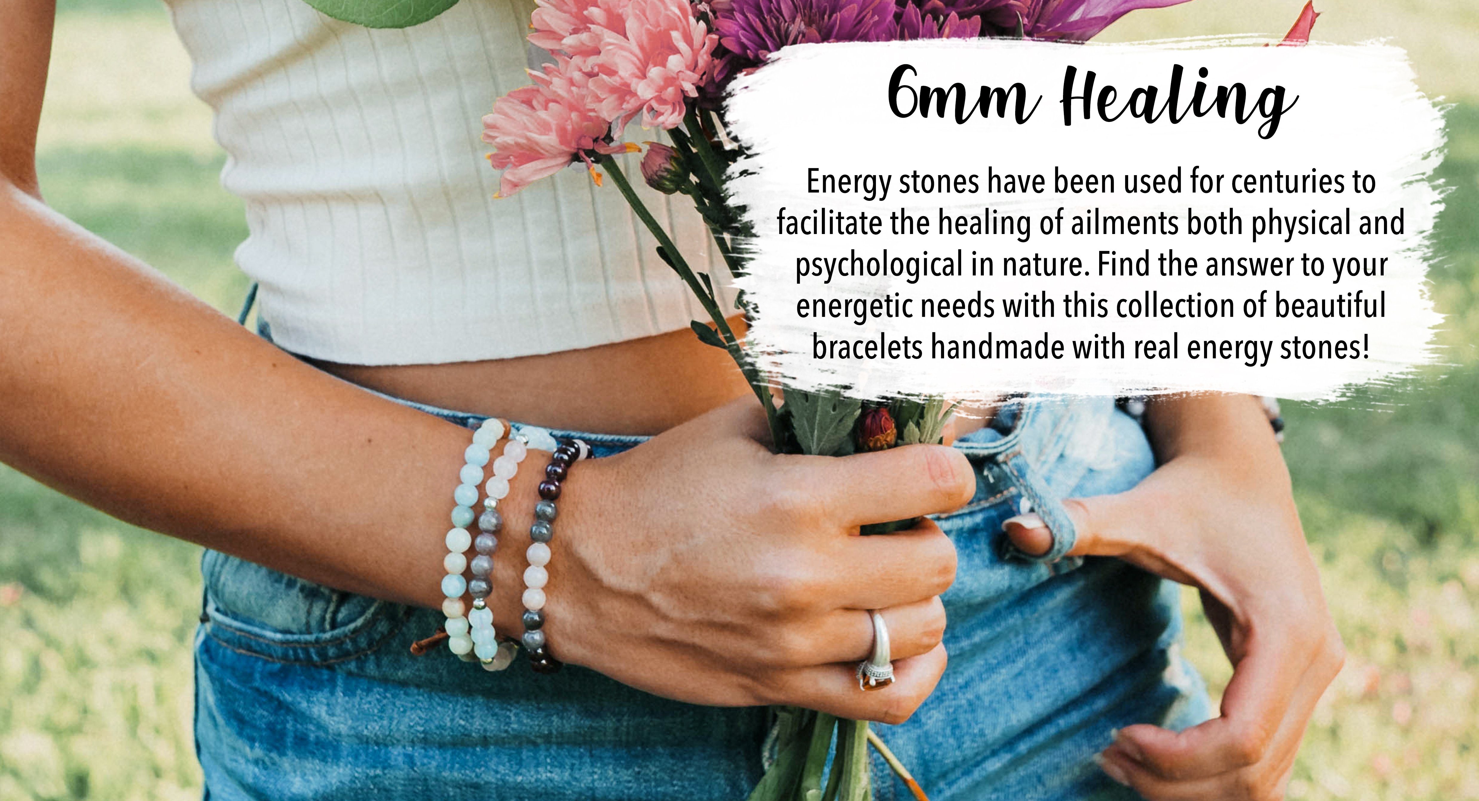 خرز حجر الطاقة 6 مم: كوارتز الكرز وأم اللؤلؤ. يعتبر الكوارتز الكرزي، المصنوع من الضوء النقي، سيد جميع البلورات العلاجية، ويعمل على تضخيم طاقات الأحجار الأخرى المحيطة به. تشع أم اللؤلؤ بالطاقة المهدئة للمحيط، وتحفز الخيال والحدس.