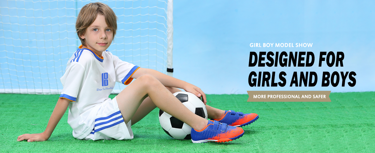 يساعد النعل الخارجي المطاطي الداخلي أو الخارجي ذو الإمساك الجيد والجر الأطفال على العثور على إحساسهم بالتسجيل في ملعب كرة القدم.