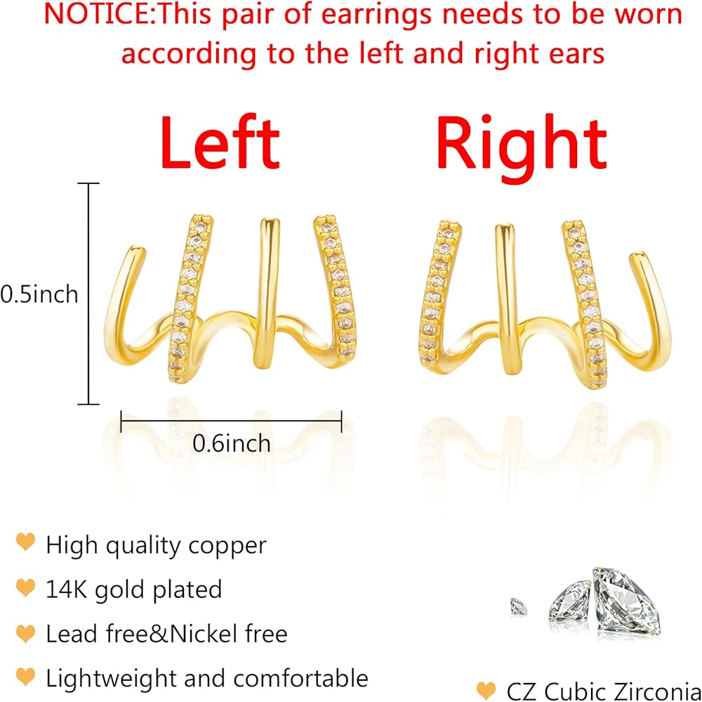 【أقراط مخلب الزركون】 تم تصميم أقراط الأذن ذات المخالب الصغيرة على شكل أربعة مخالب وزركون سيبيك مدمج على المخالب، وأساور الأذن المثقوبة، ورقيقة وعصرية، وستبدو آذانًا مثقوبة متعددة، وأقراط وهمية رائعة.