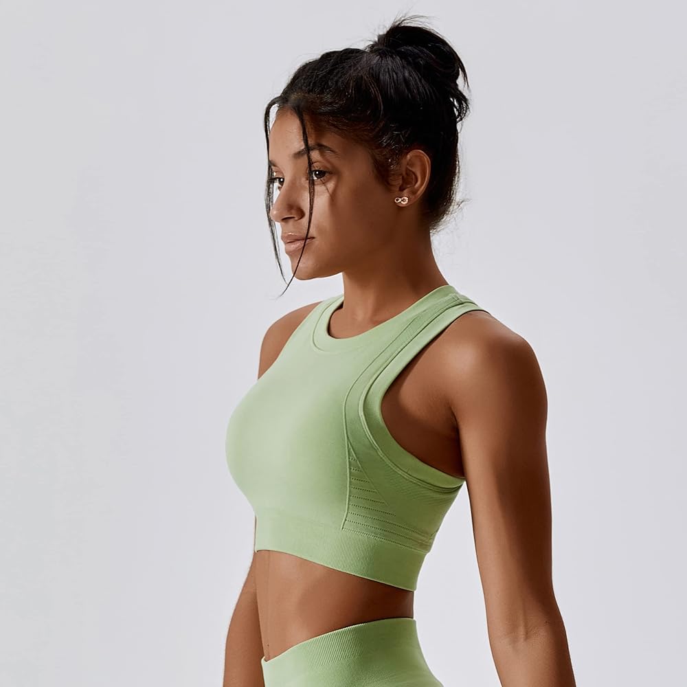 تصميم محبوك ومضلع بدون خياطة، يمنحك أقصى قدر من حرية الحركة. سيبقيك الشريط السفلي المضلع السميك مدعومًا طوال أي تمرين.