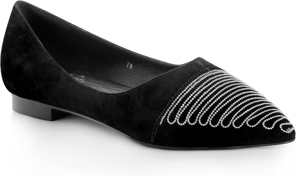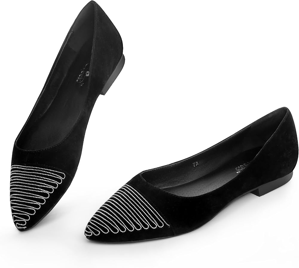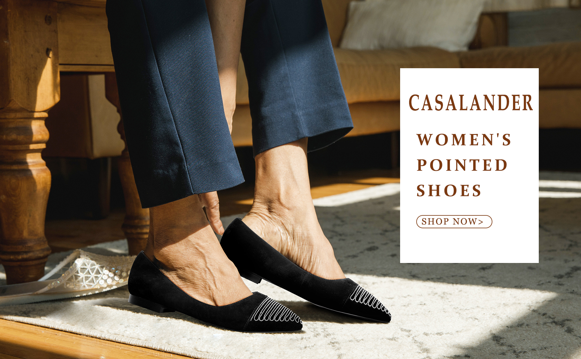 حذاء CASALANDER نسائي بمقدمة مدببة سهل الارتداء حذاء باليه مسطح للنساء حذاء مريح من جلد نوبوك بسيط