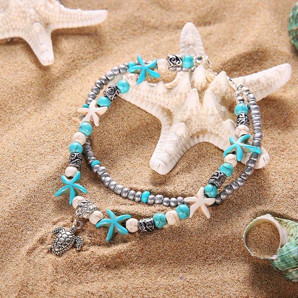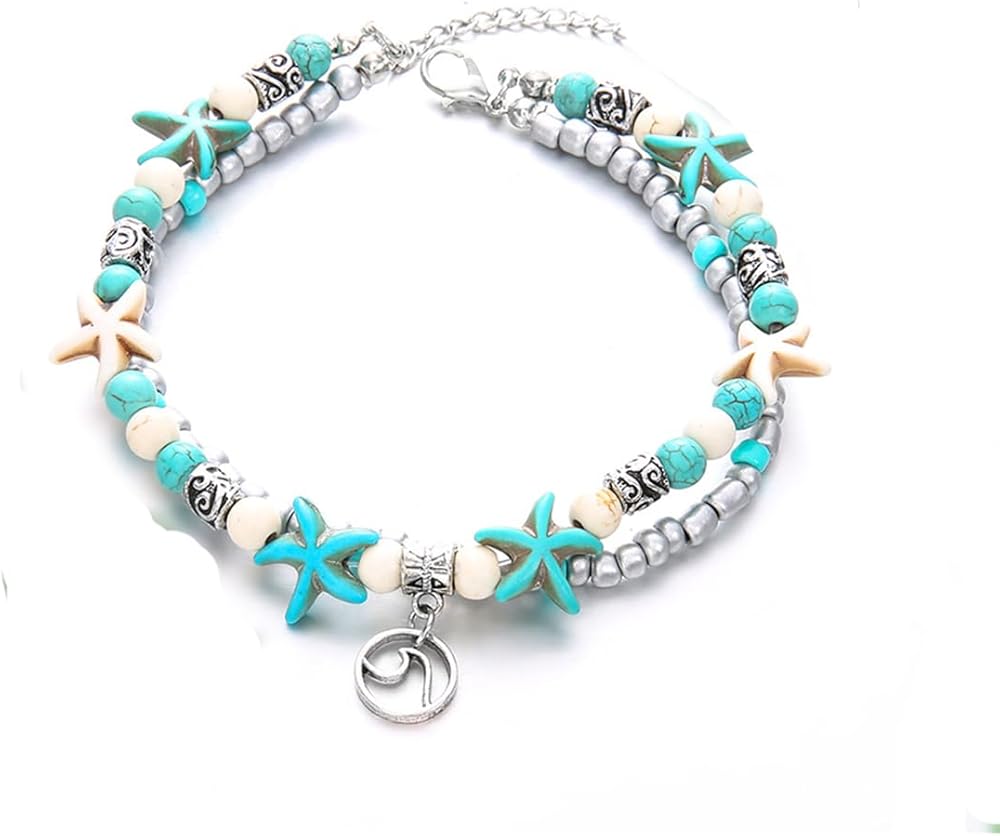 خلخال Deicicp الساحر على شكل نجمة البحر البوهيمية باللون الفيروزي - مجوهرات رائعة مصنوعة يدويًا، تضيف سحرًا آسرًا إلى أزياء الصيف الخاصة بك. مثالي للعطلات والشاطئ والحفلات (الموجة)