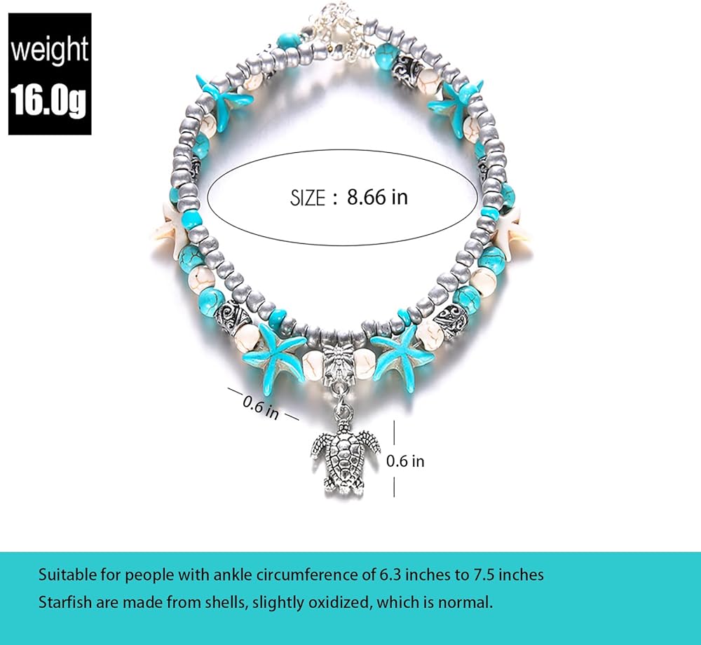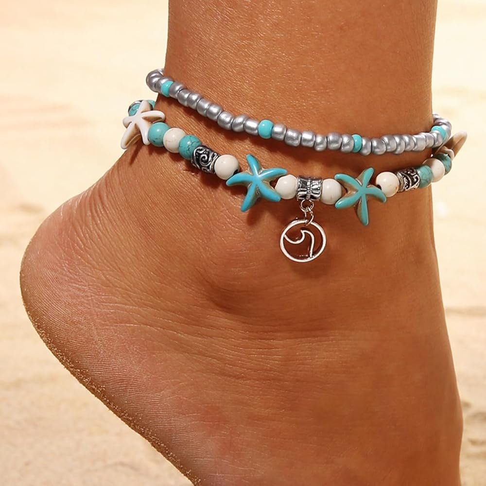 Enchanting Bohemian Sea Star Turquoise Anklet - Exquisite Handcrafted Jewelry, Adding Captivating Charm to Your Summer Fashion. Perfect for Vacation, Beach, Parties, and Everyday Wear