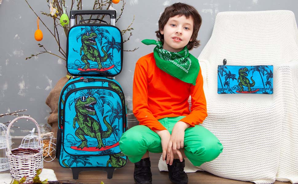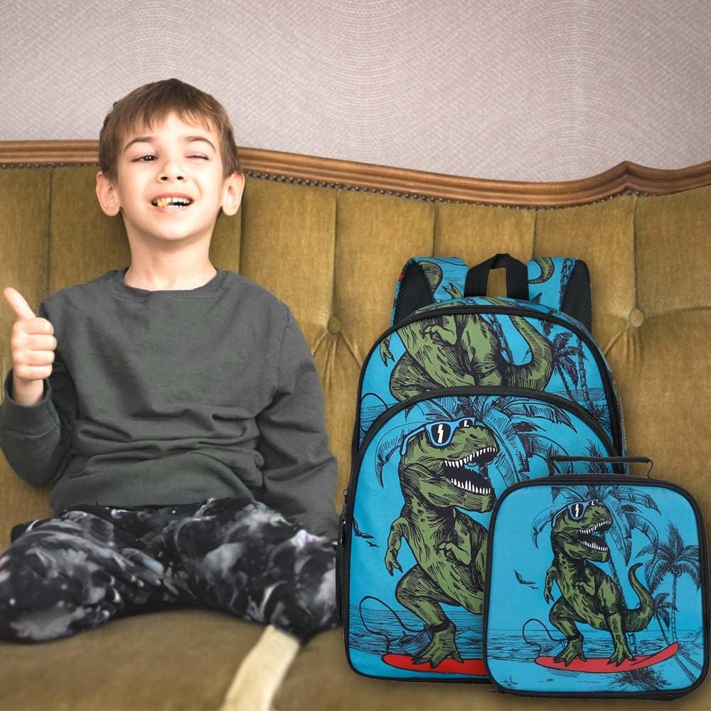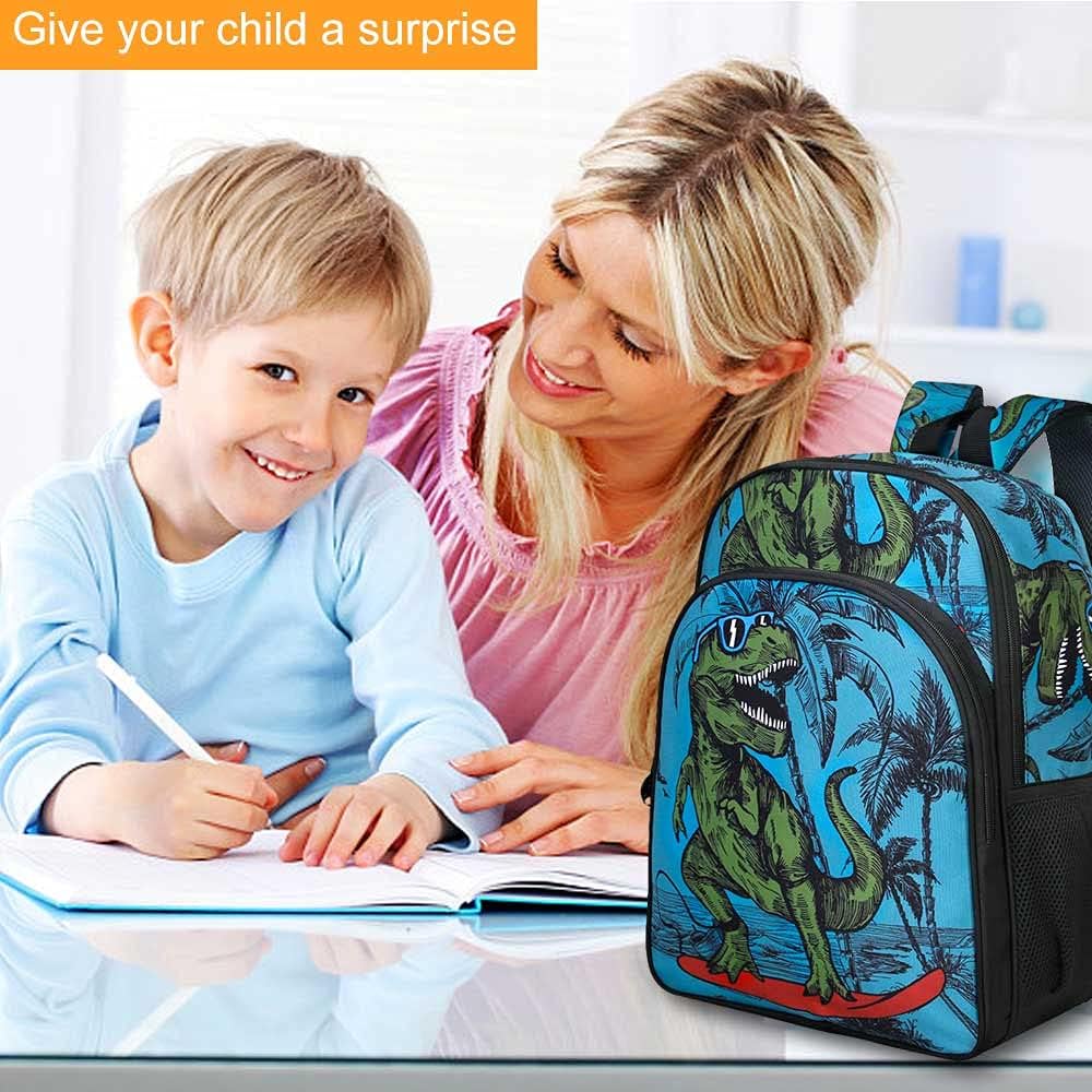 تصميم فريد: مجموعة حقيبة الظهر وصندوق الغداء هذه على شكل ديناصور مستوحاة من العمل الفني لفنان محبب، مجموعة حقائب الظهر للأطفال تجسد أرواح الخيال والأناقة التي تلهم طفلك الصغير لامتلاك أحلامه.