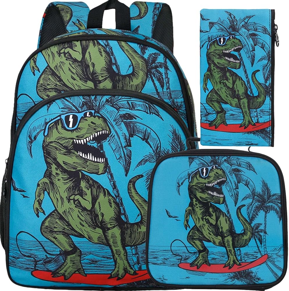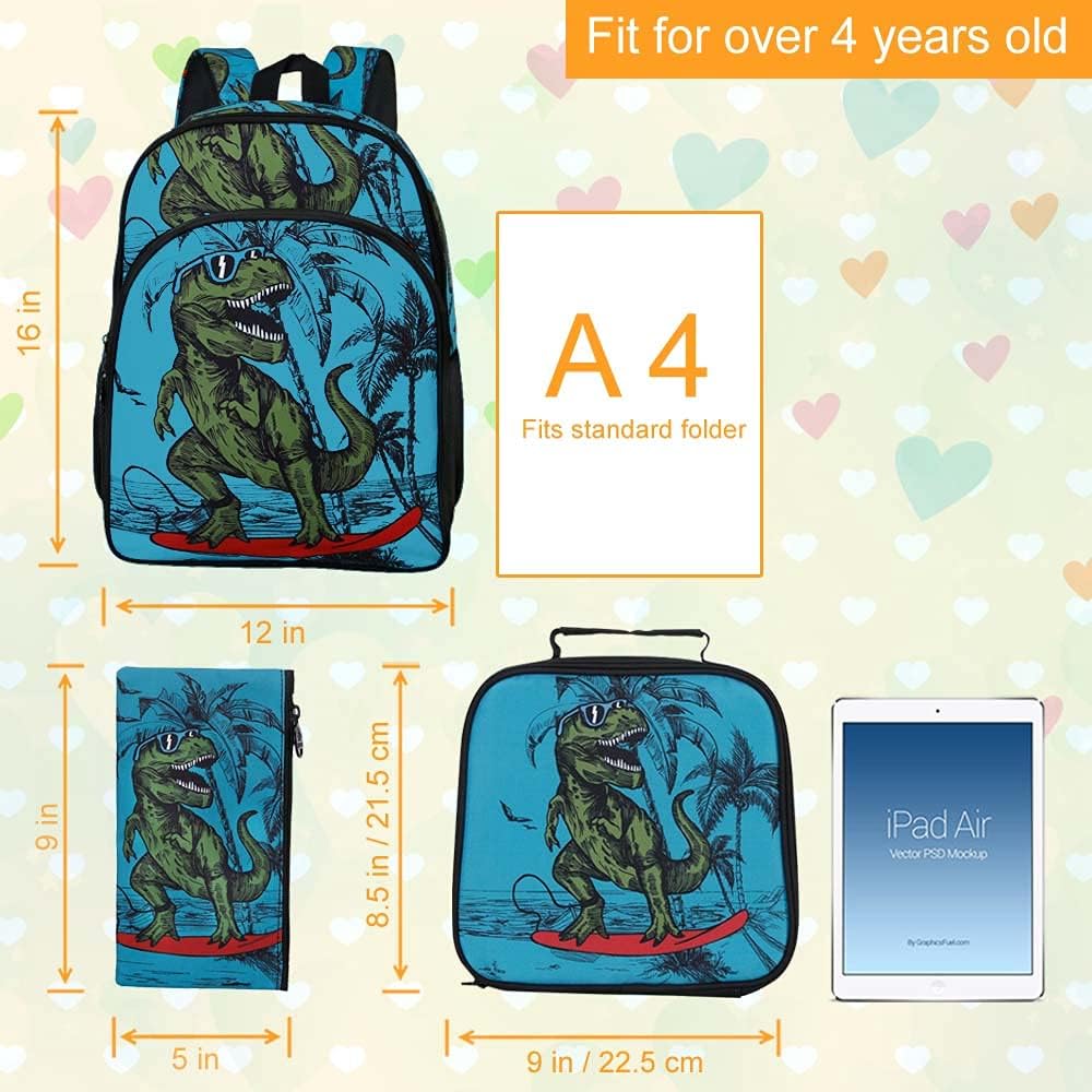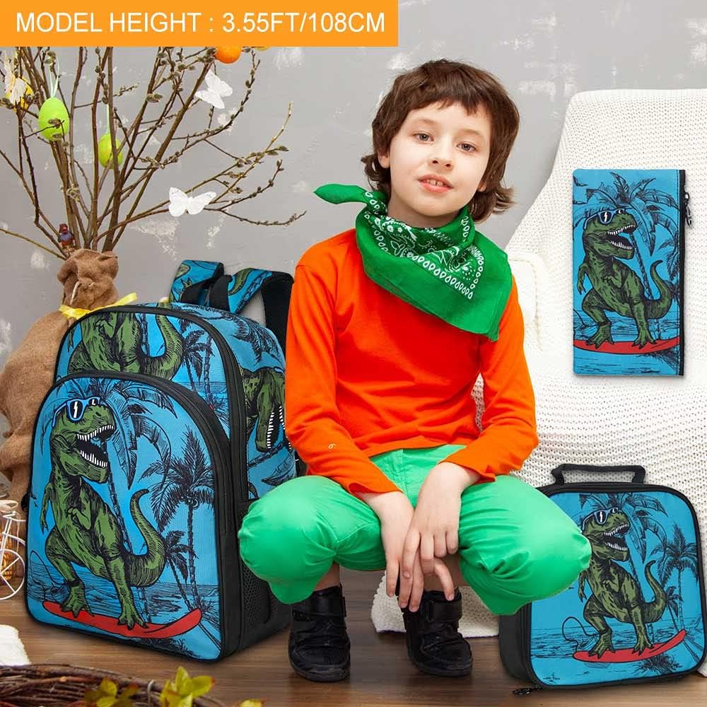 حقيبة ظهر 3 في 1: تتضمن مجموعة حقيبة الظهر للأولاد حقيبة ظهر واحدة على شكل ديناصور، وصندوق غداء واحد وحقيبة أقلام واحدة، ومادة بوليستر ناعمة، وسحاب ناعم، وأحزمة كتف سميكة وسميكة تجعلها تشعر باللطف والراحة.