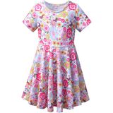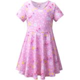 - فساتين يونيكورن قوس قزح للفتيات الصغيرات، فساتين صيفية قصيرة الأكمام، رقبة دائرية، طول الركبة