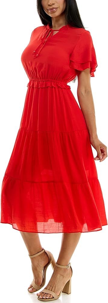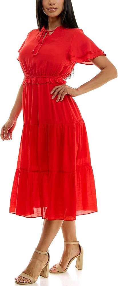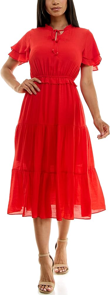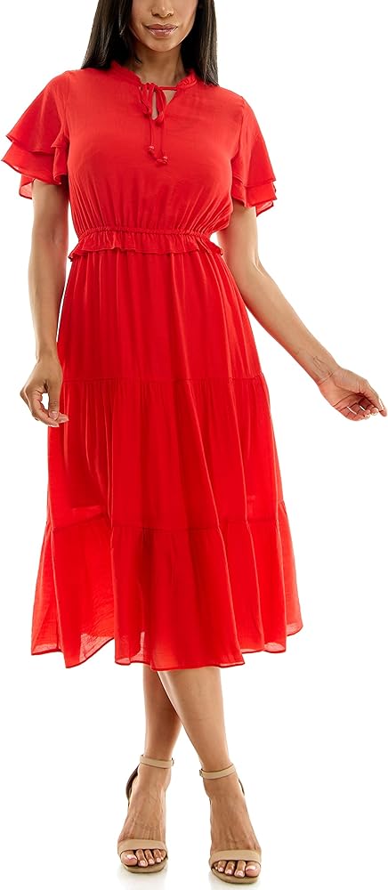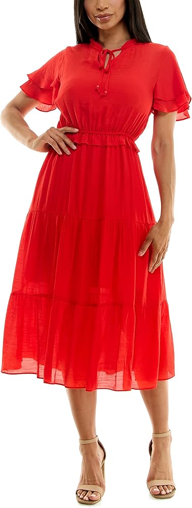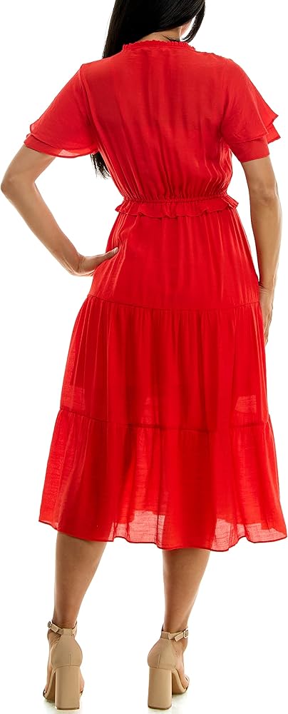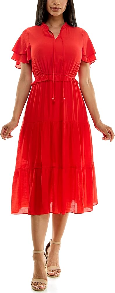 فستان Nanette Nanette Lepore النسائي طويل ذو نسيج كاريبي مع تنورة ثلاثية الطبقات